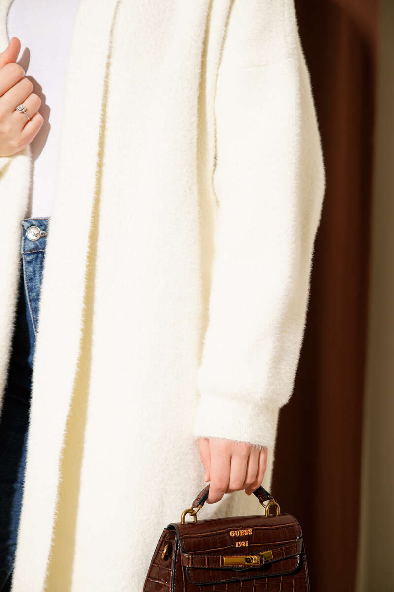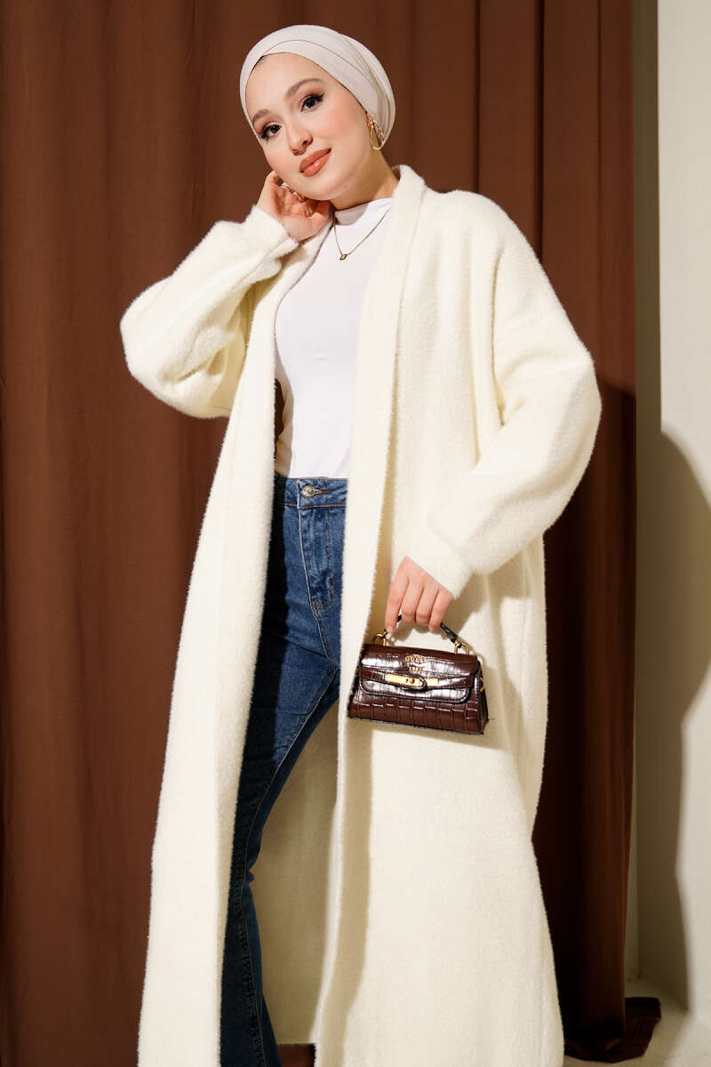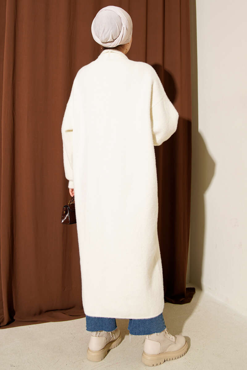 Şal Yaka Sakallı Triko Uzun Hırka Haki