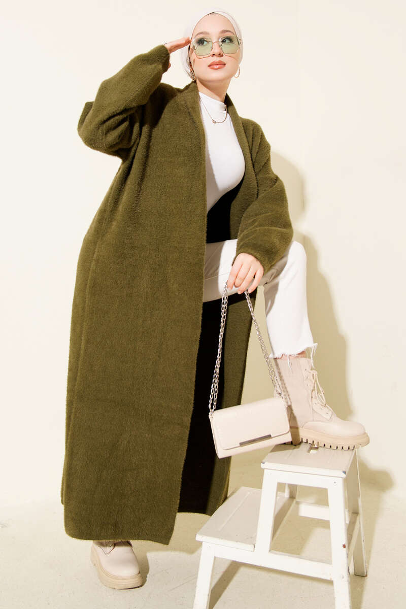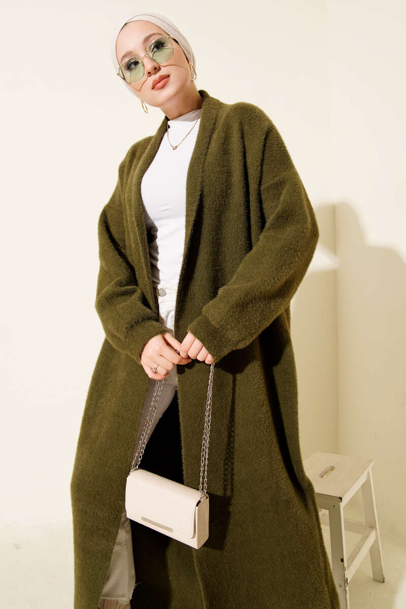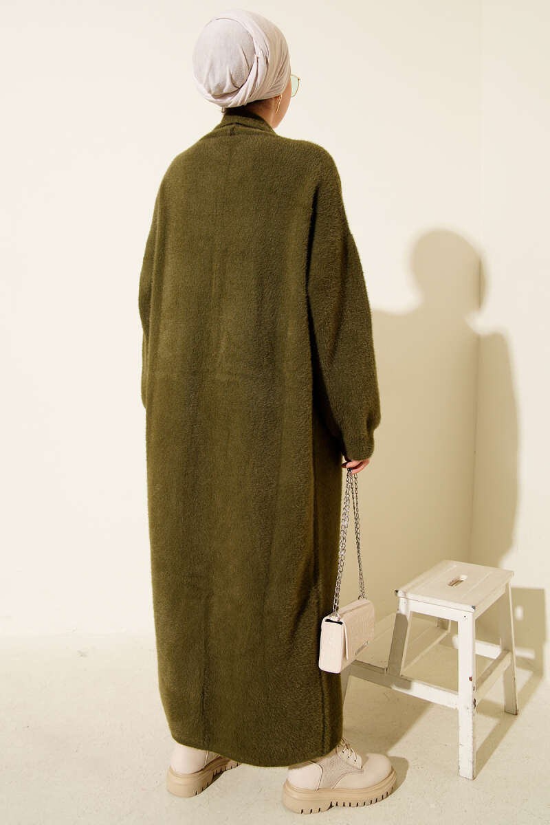 Zikzak Desenli Gold Düğmeli Triko Hırka Haki