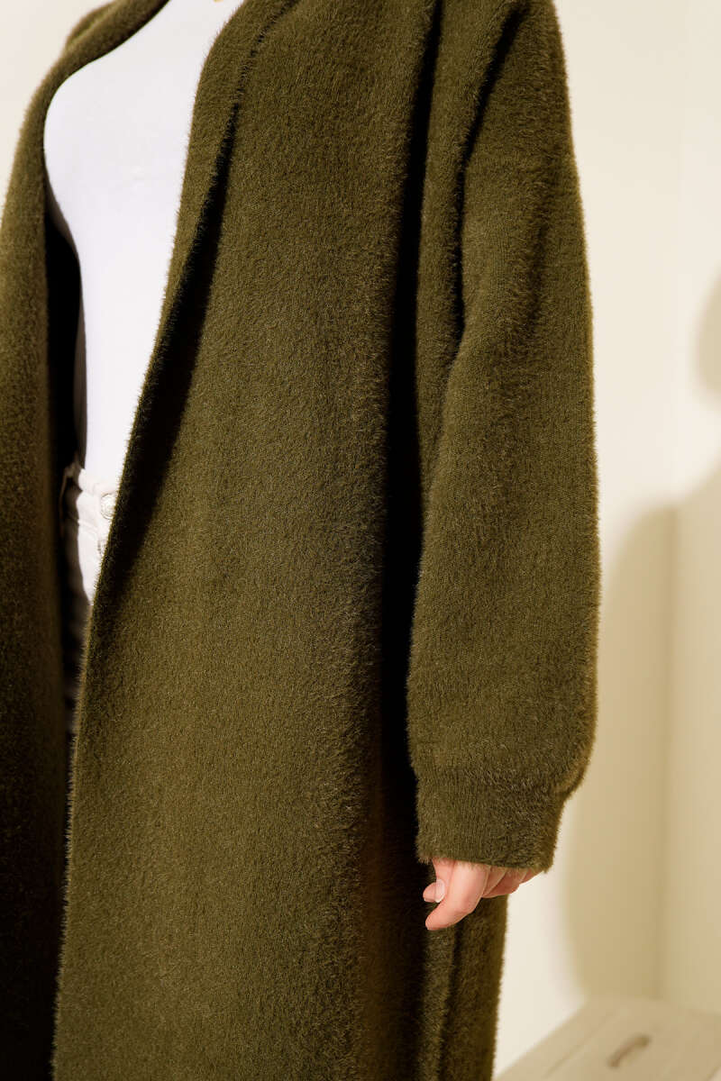 Şal Yaka Sakallı Triko Uzun Hırka Ekru