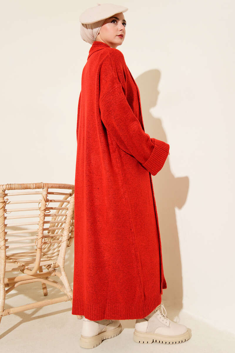 Şal Yaka Uzun Triko Hırka Kırmızı