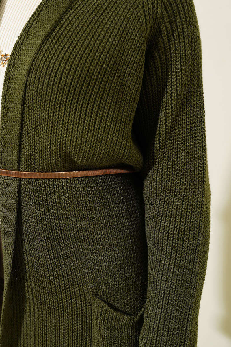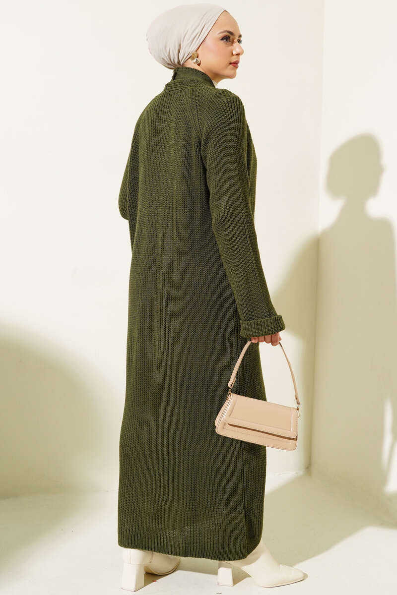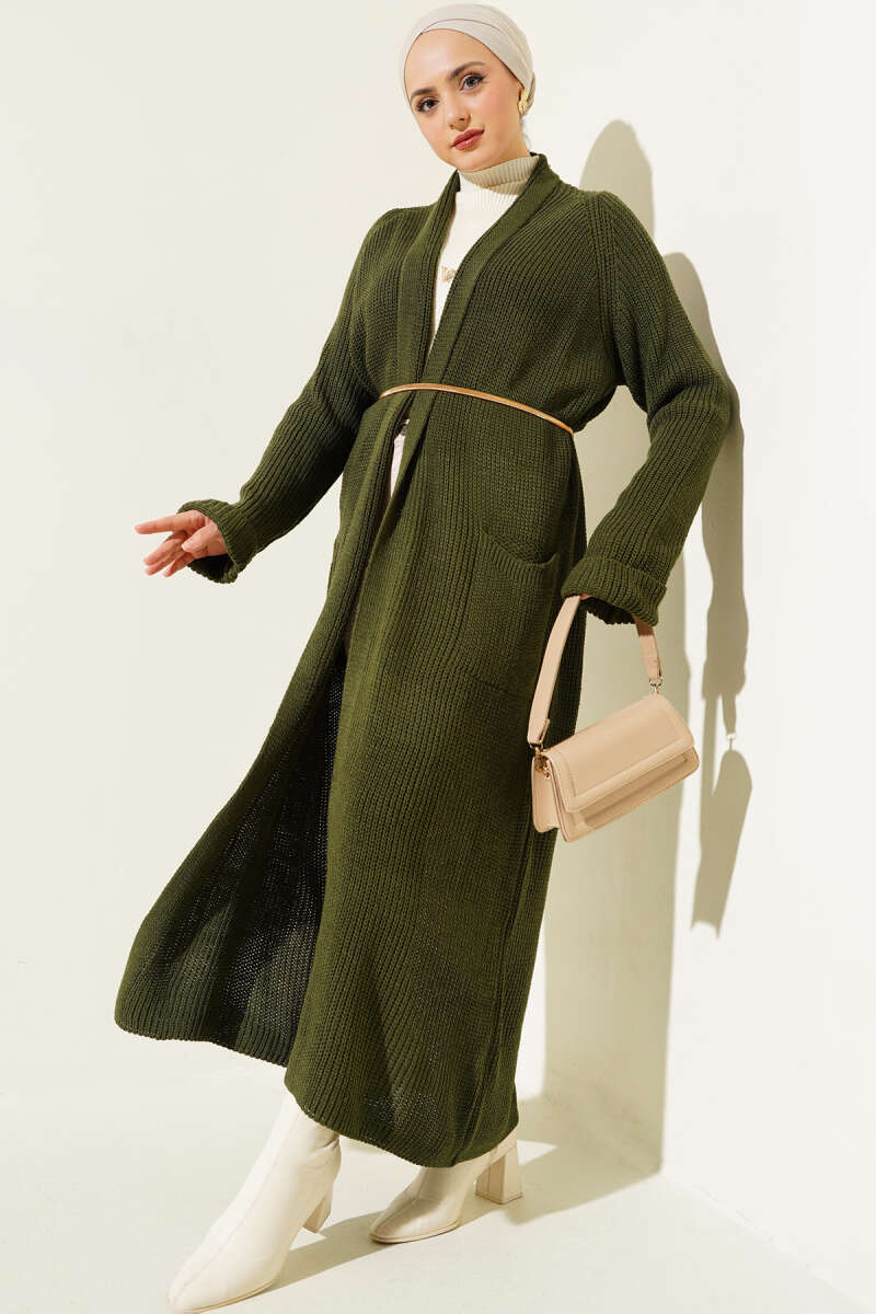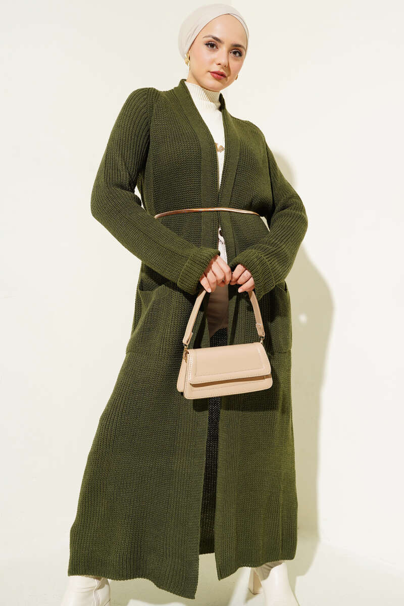 Basic Çift Cepli Uzun Triko Hırka Bej