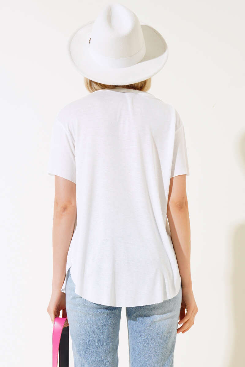 Fitilli Bisiklet Yaka İkili Bluz Vişne