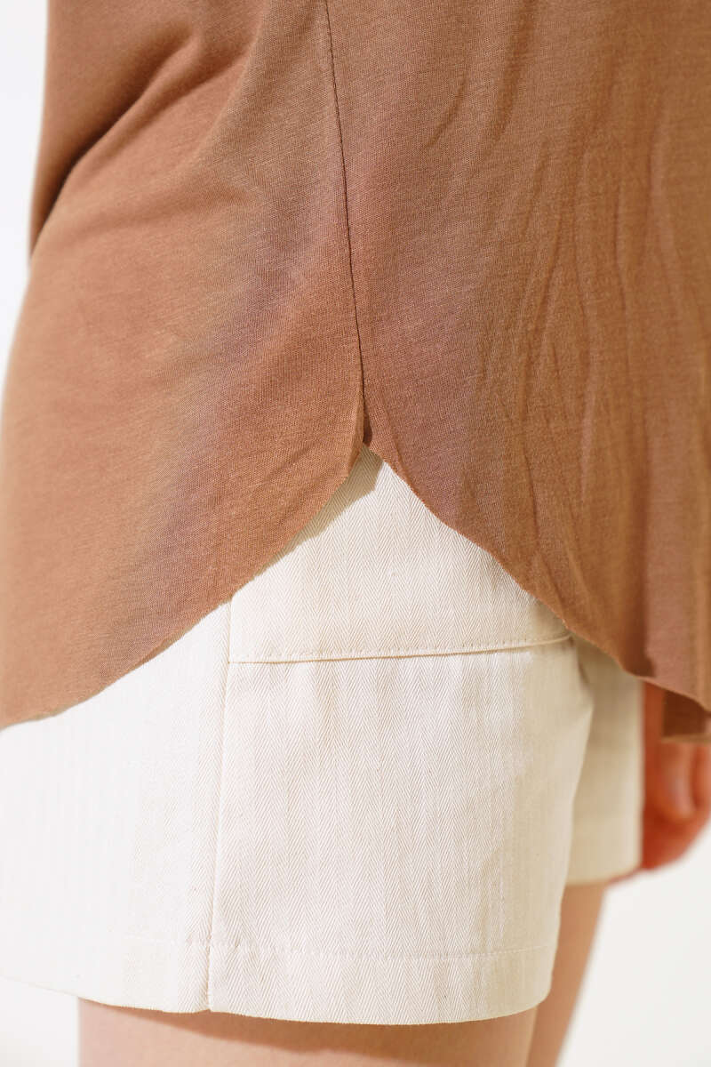 V Yaka Bağlamalı Kısa Gömlek Bordo