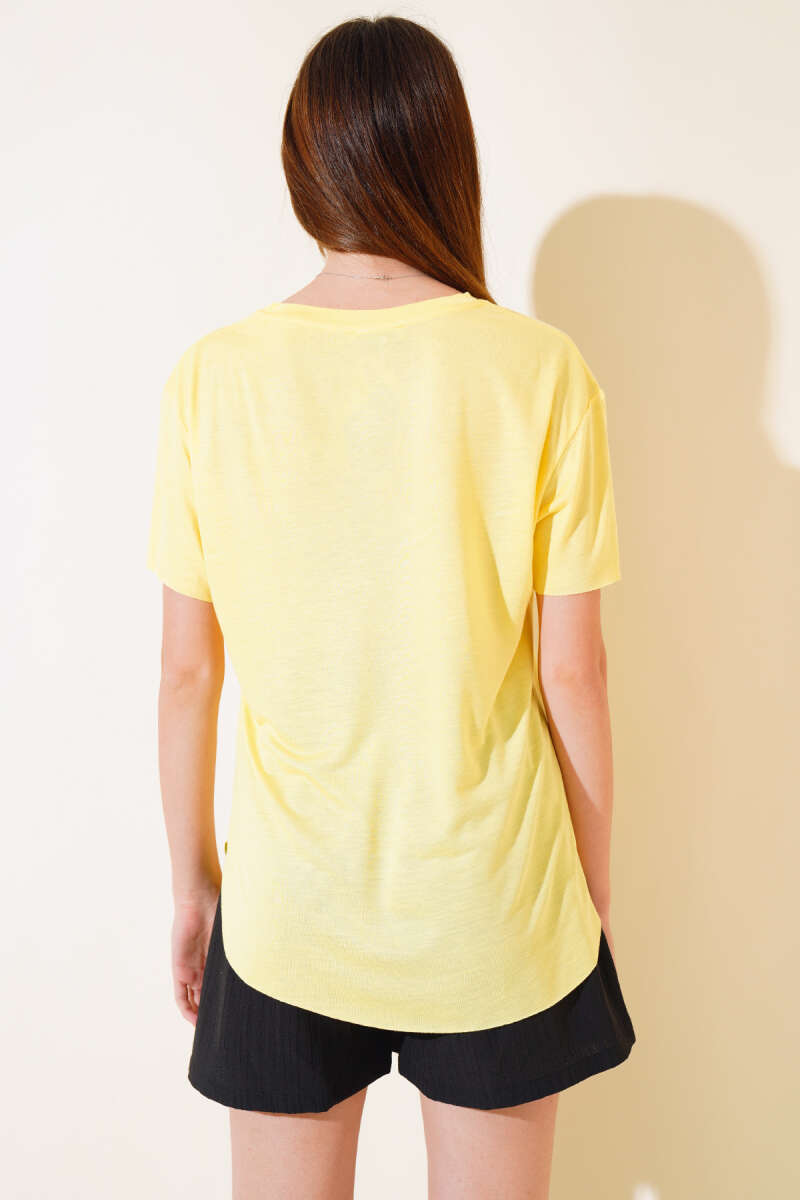 Bisiklet Yaka Bürümcük T-shirt Mavi