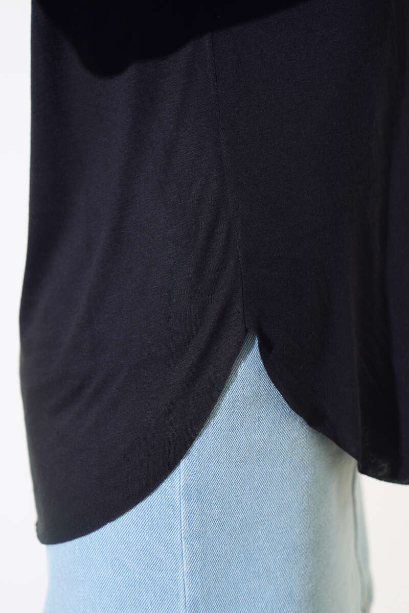 Çoban Dikiş Detaylı Triko Tunik Siyah