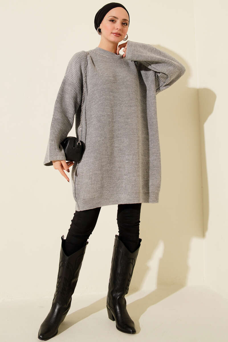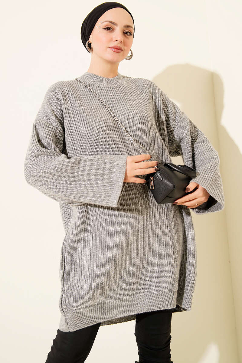 Salaş Bisiklet Yaka Simli Triko Tunik Taş