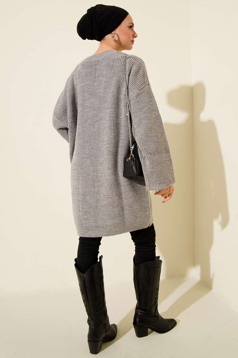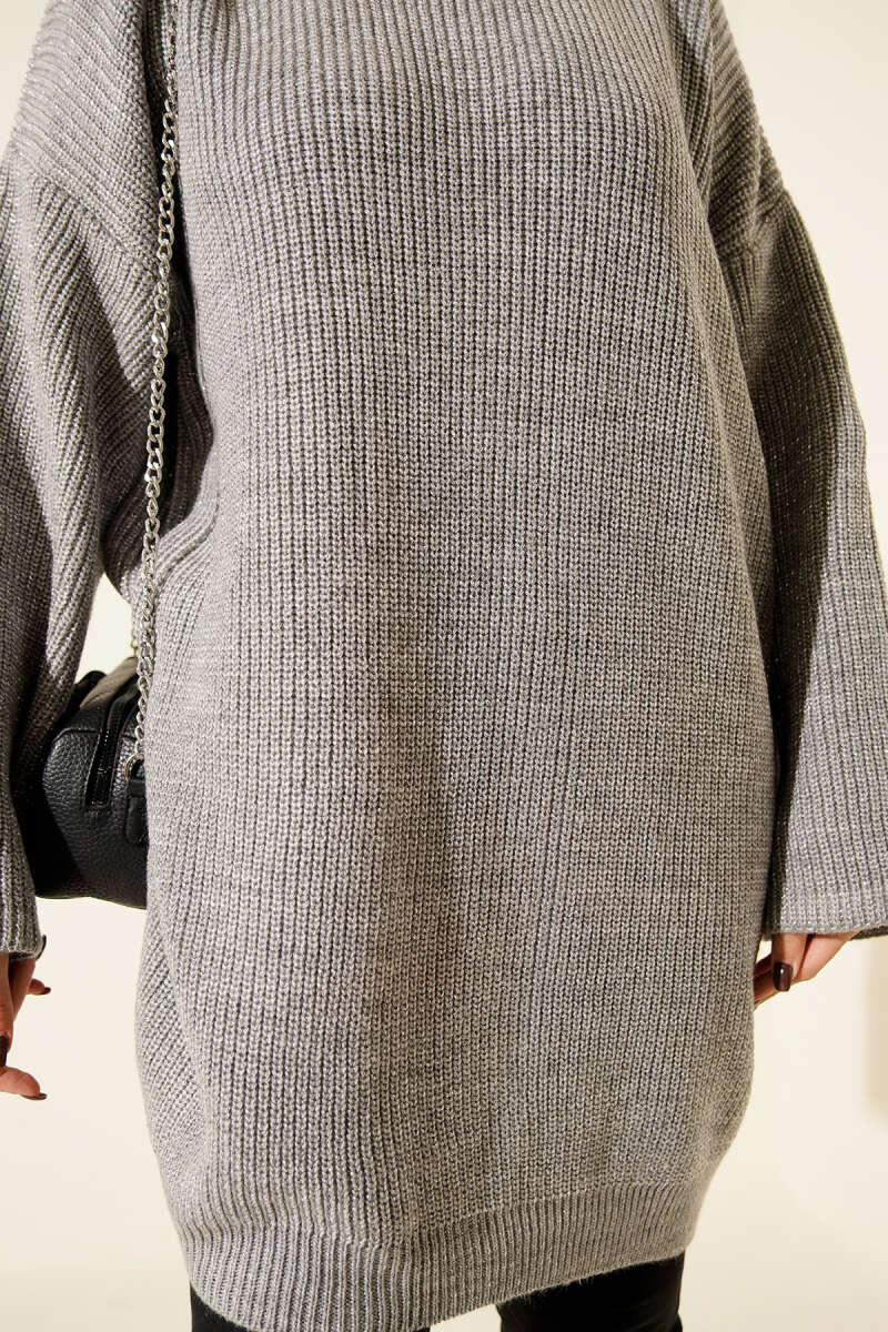 Salaş Bisiklet Yaka Simli Triko Tunik Füme