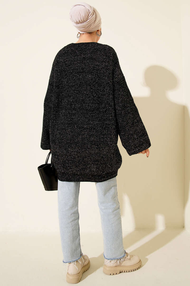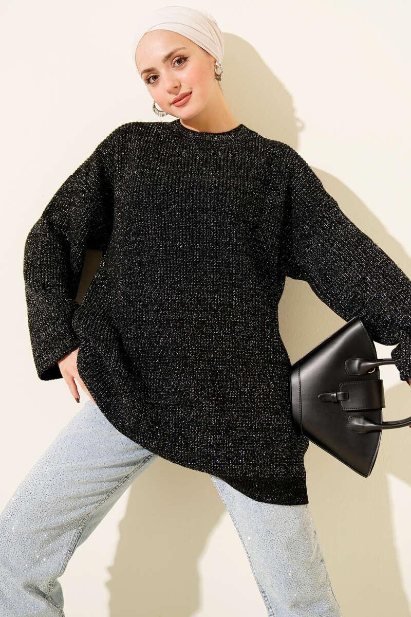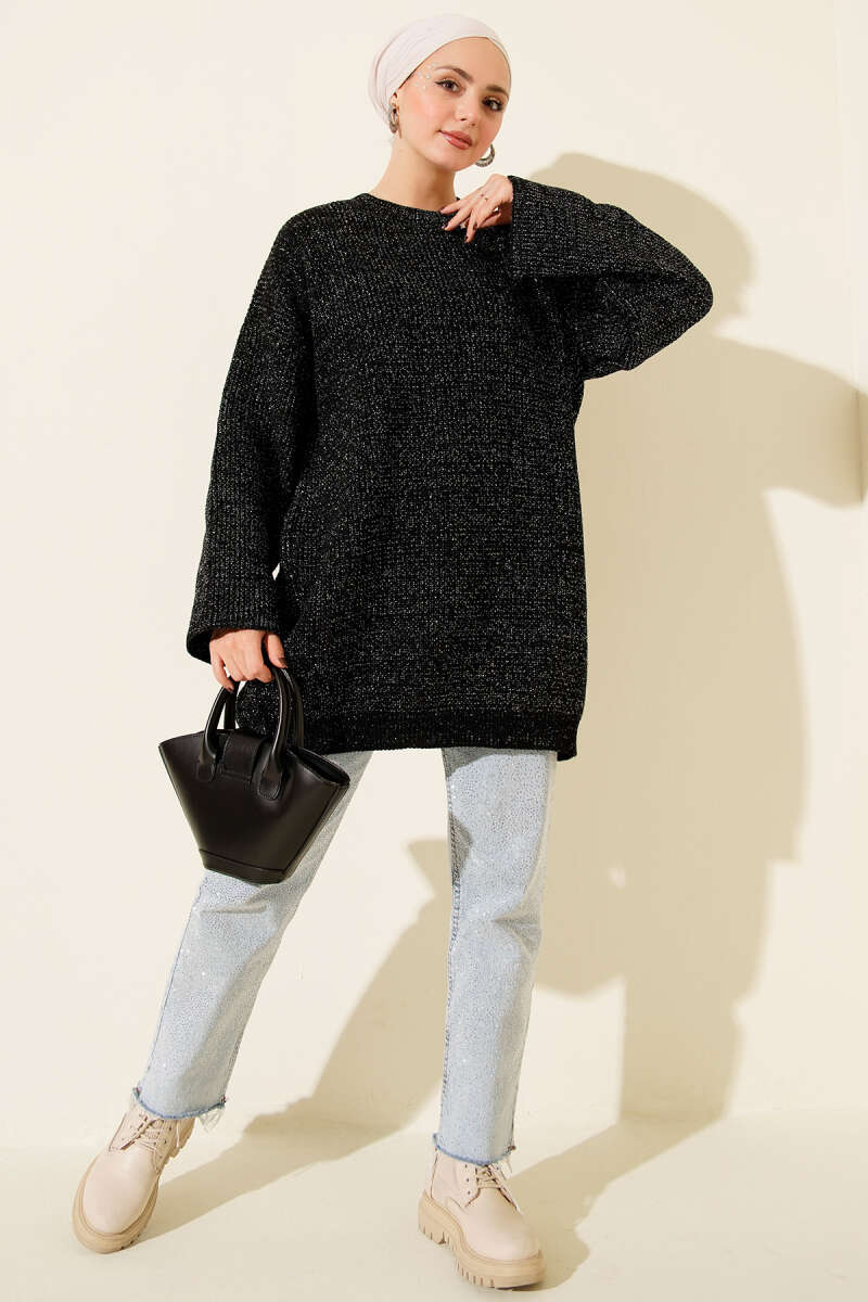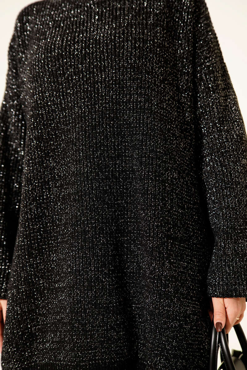 Salaş Bisiklet Yaka Simli Triko Tunik Taş