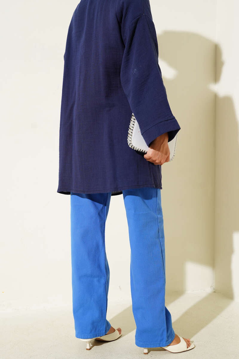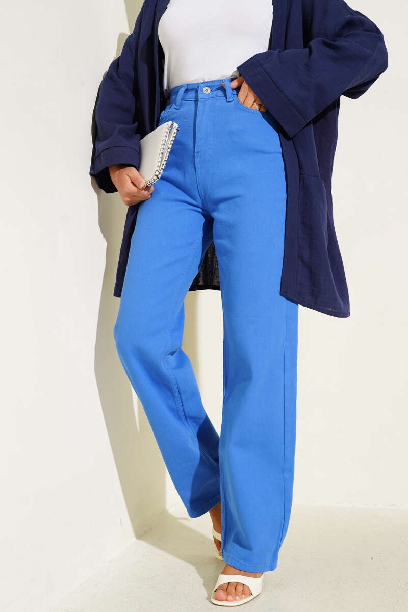 Ön Dikişli Palazzo Kot Pantolon Mavi