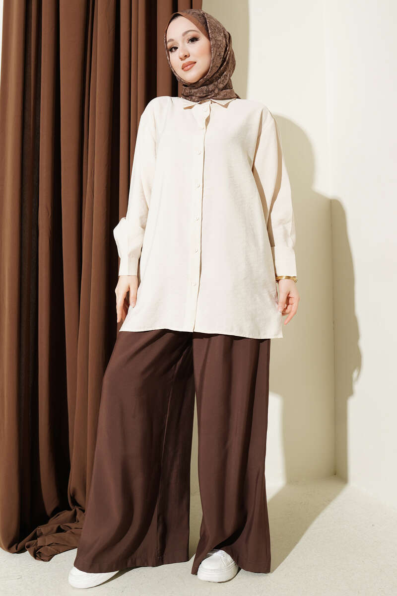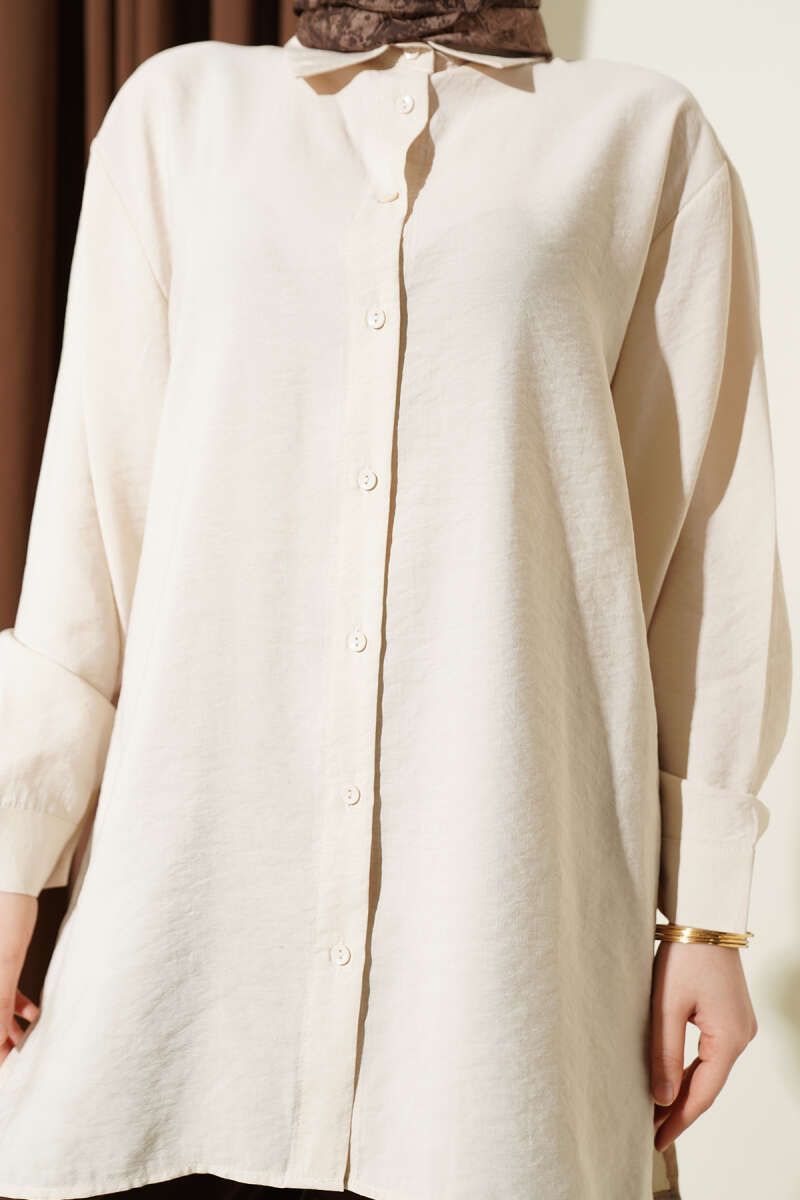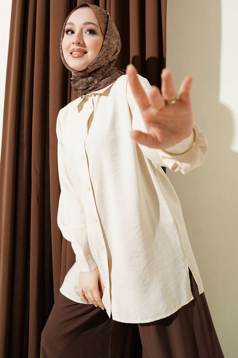 Modern ve çabasız bir şıklık sunan bu modal gömlek, salaş kesimi ve düşük omuz detayıyla gün boyu üstün konfor sağlar. Yumuşak dokulu kumaşı sayesinde teninizde ipeksi bir his bırakırken, boydan düğmeli tasarımı ve klasik yaka formu zamansız bir görünüm sunar. Hem günlük kombinlerde hem de ofis stilinde rahatça tercih edilebilecek bu parça, dökümlü yapısıyla her vücut tipine mükemmel uyum sağlar. Gardırobunuzun temel parçalarından biri olacak bu gömlek, farklı alt gruplarıyla kolayca eşleşerek stilinizi tamamlar.