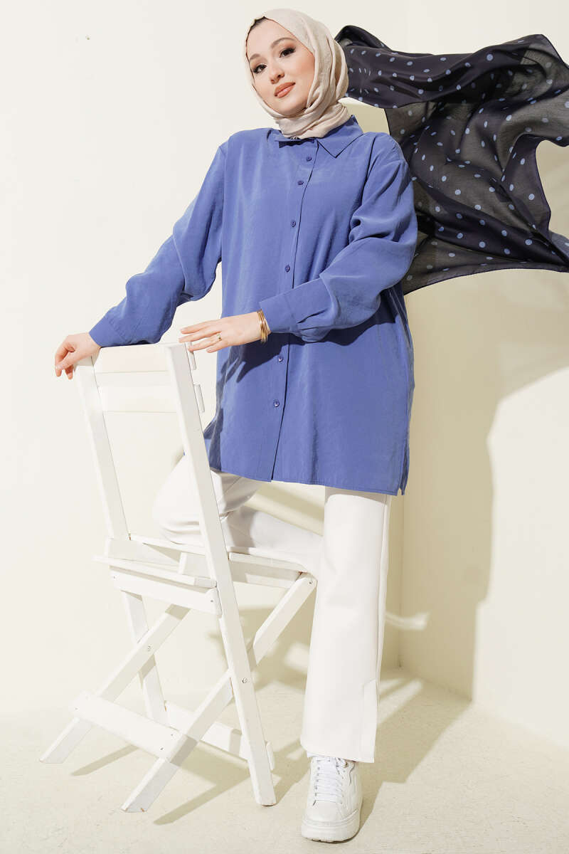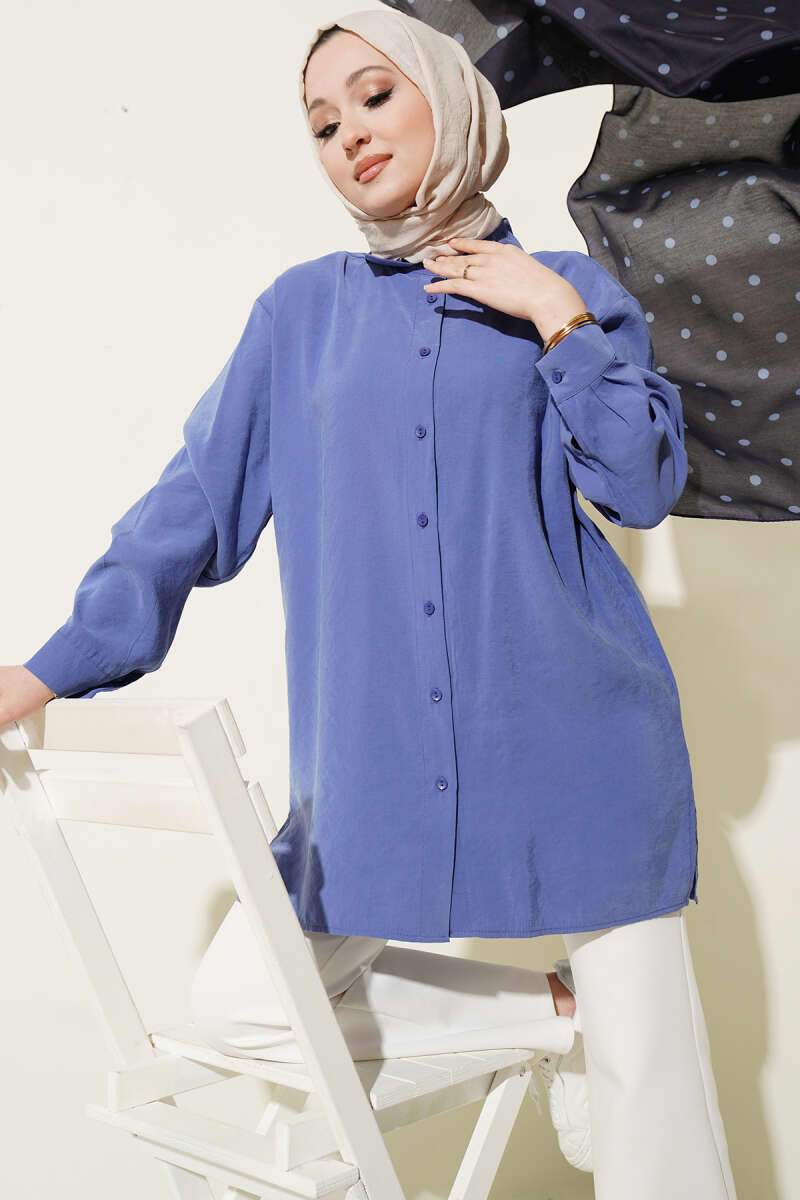 Salaş Düşük Omuz Modal Gömlek Eflatun