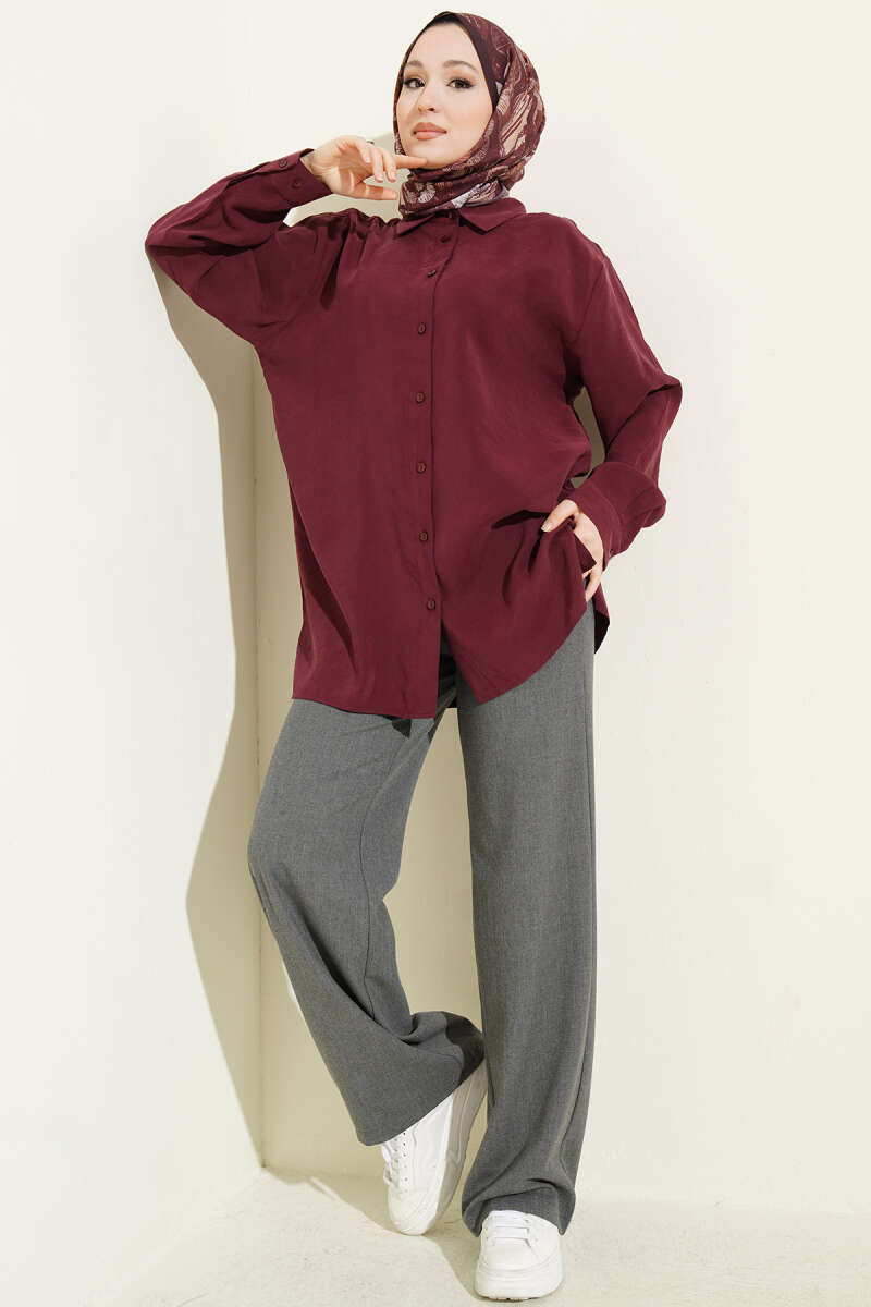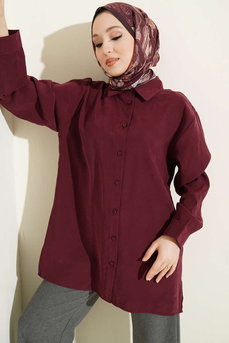 Salaş Düşük Omuz Modal Gömlek Mürdüm
