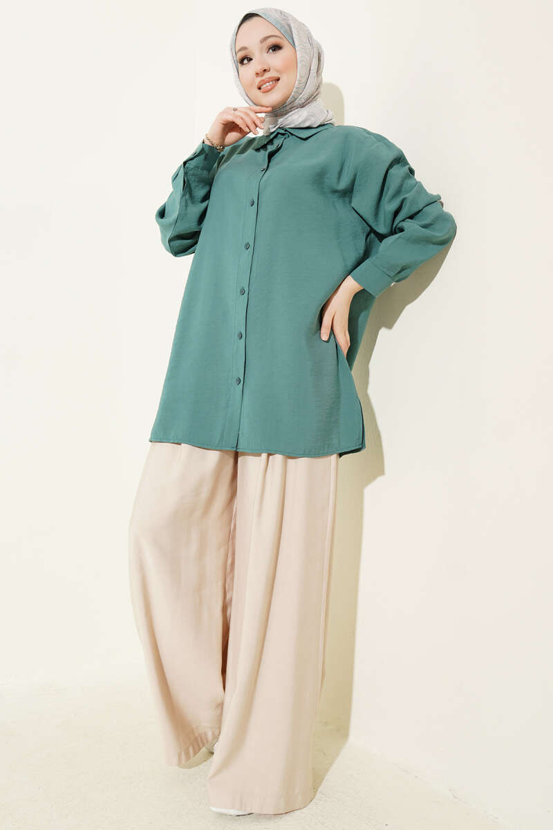 Salaş Düşük Omuz Modal Gömlek Petrol