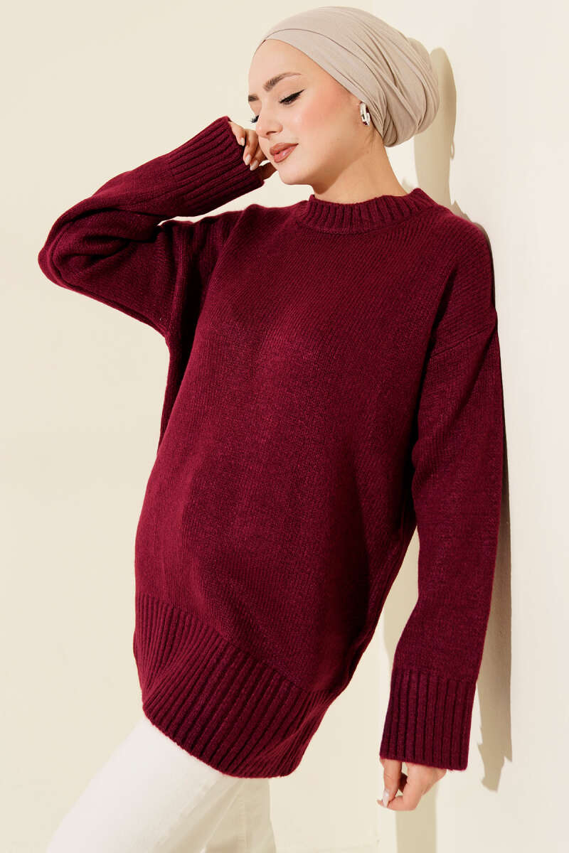 Salaş Bisiklet Yaka Simli Triko Tunik Vizon