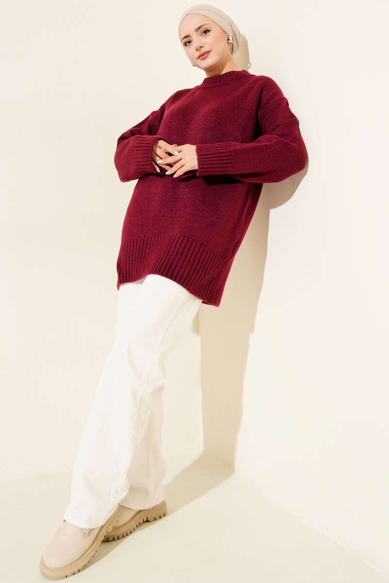 Yelekli Bel Lastik Detaylı İkili Takım Bordo