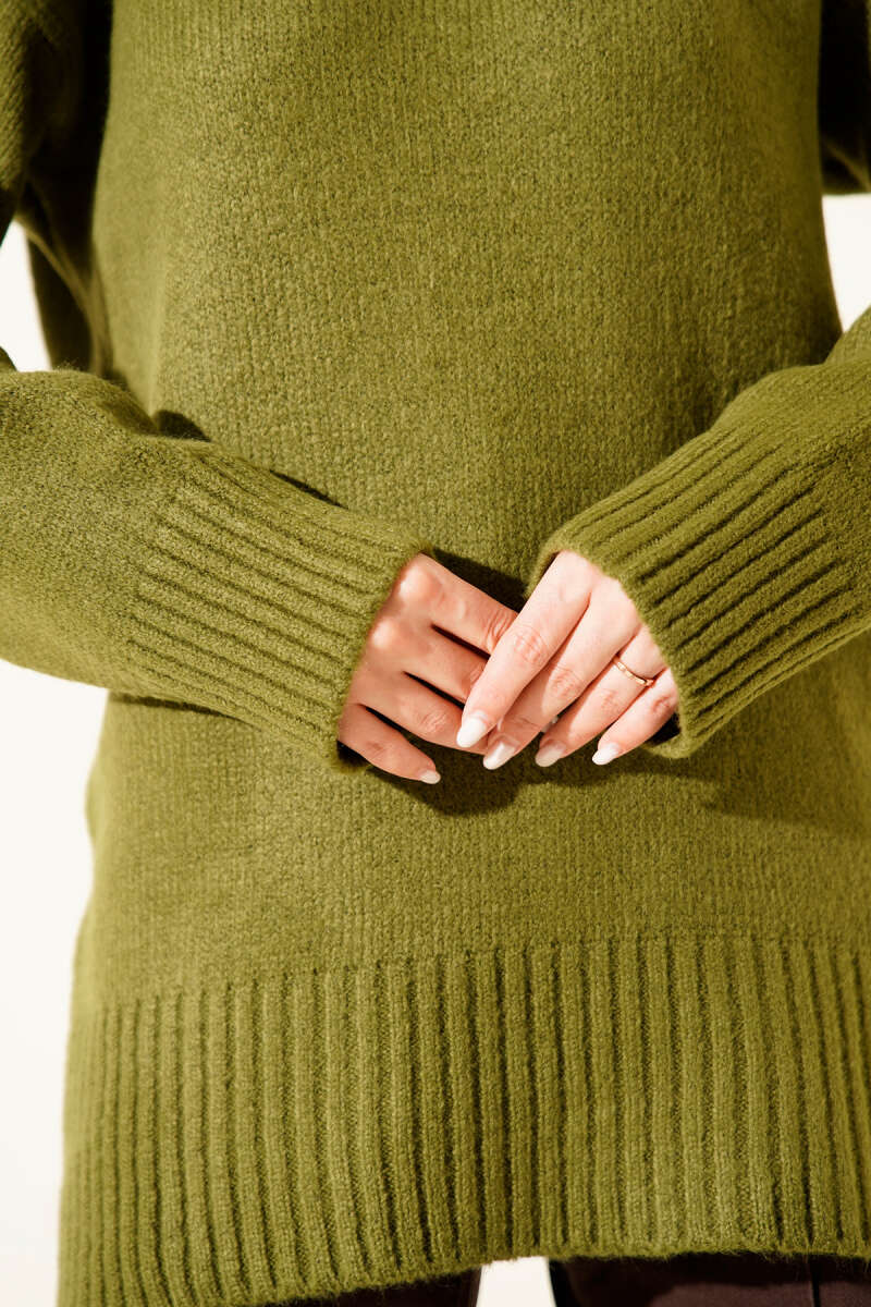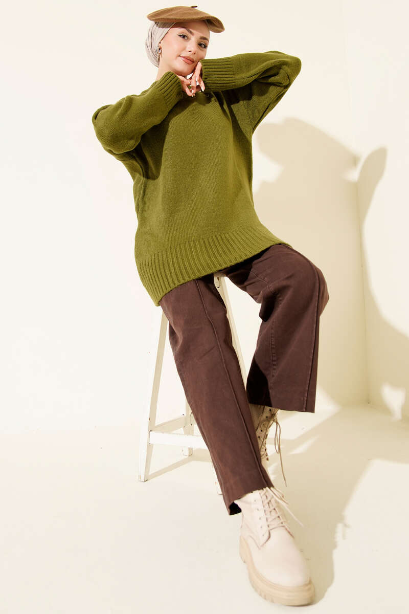 Salaş Bisiklet Yaka Simli Triko Tunik Vizon