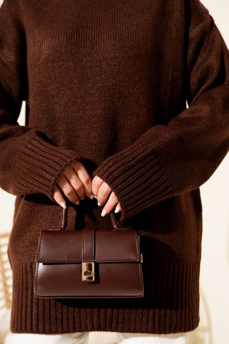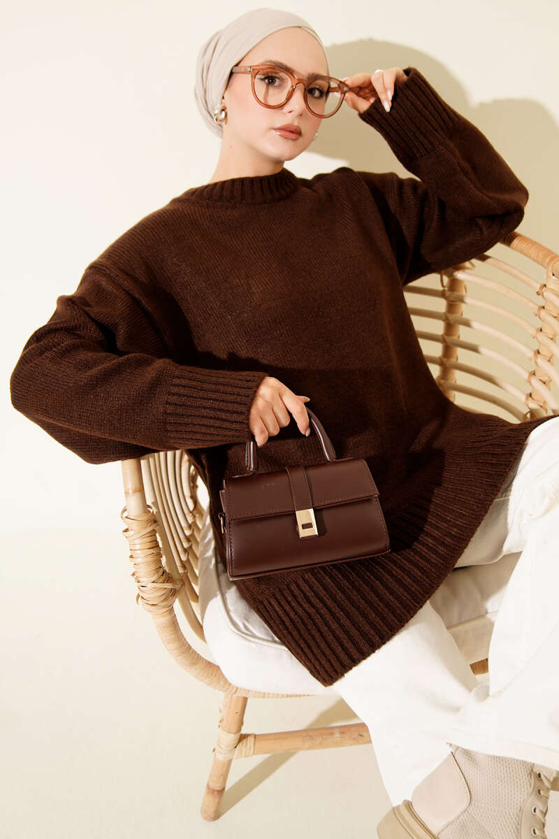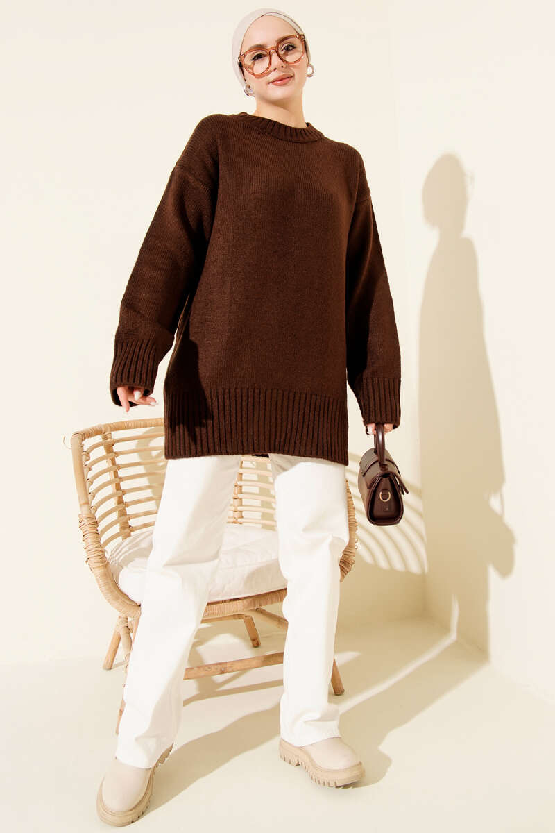 Salaş Bisiklet Yaka Simli Triko Tunik Vizon