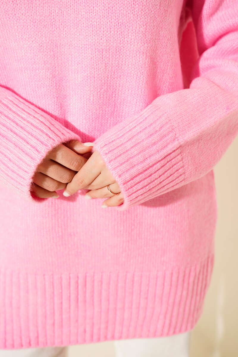 Salaş Bisiklet Yaka Simli Triko Tunik Vizon