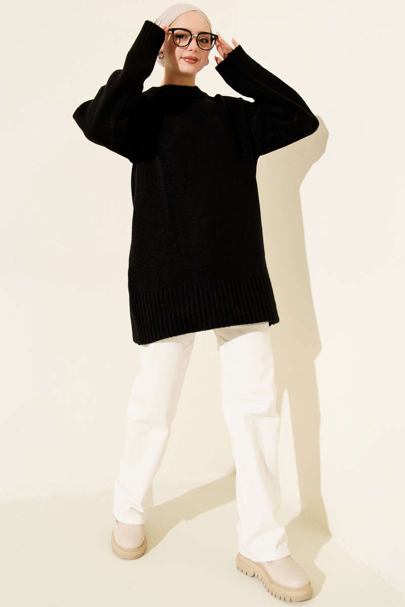 Salaş Bisiklet Yaka Simli Triko Tunik Vizon