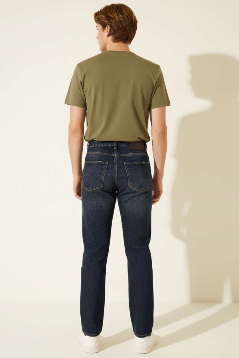 Normal Bel Boru Paça Erkek Kot Pantolon Mavi Kar