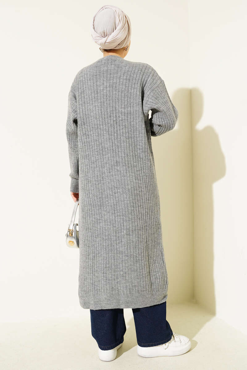 Çift Cepli Metal Düğmeli Kapüşonlu Hırka Kahve