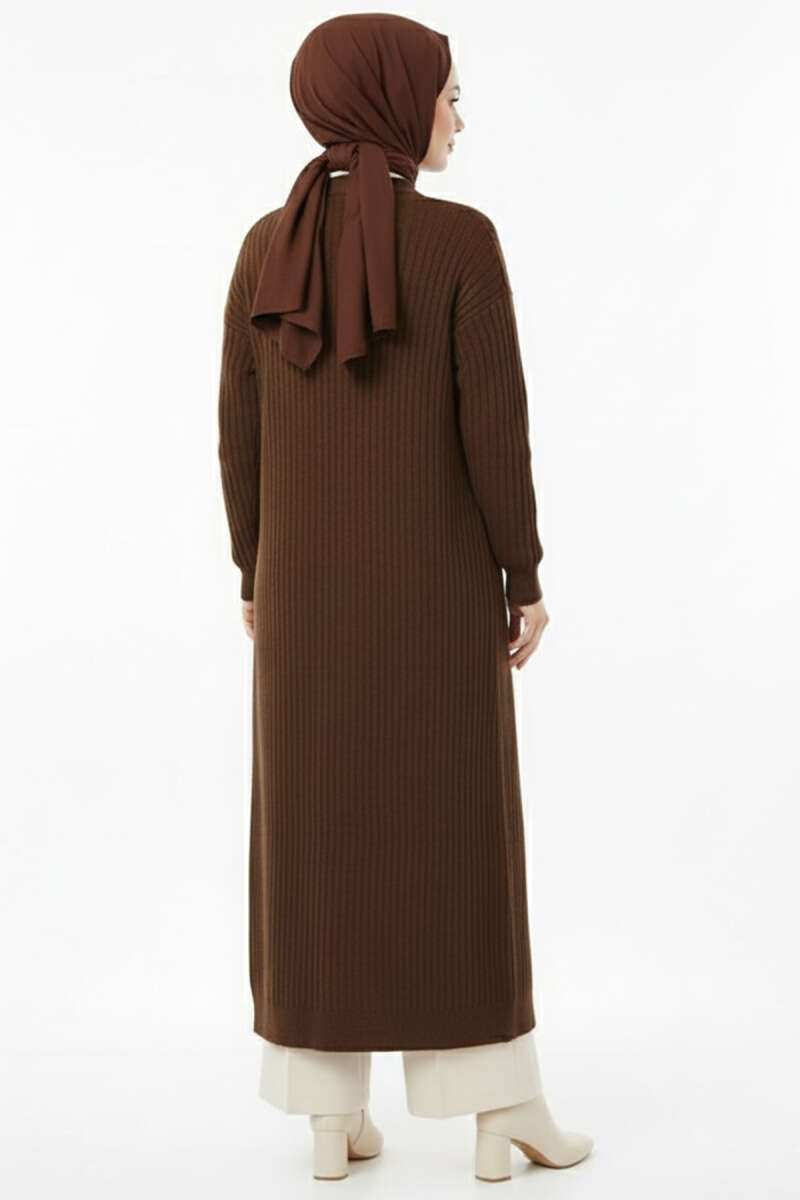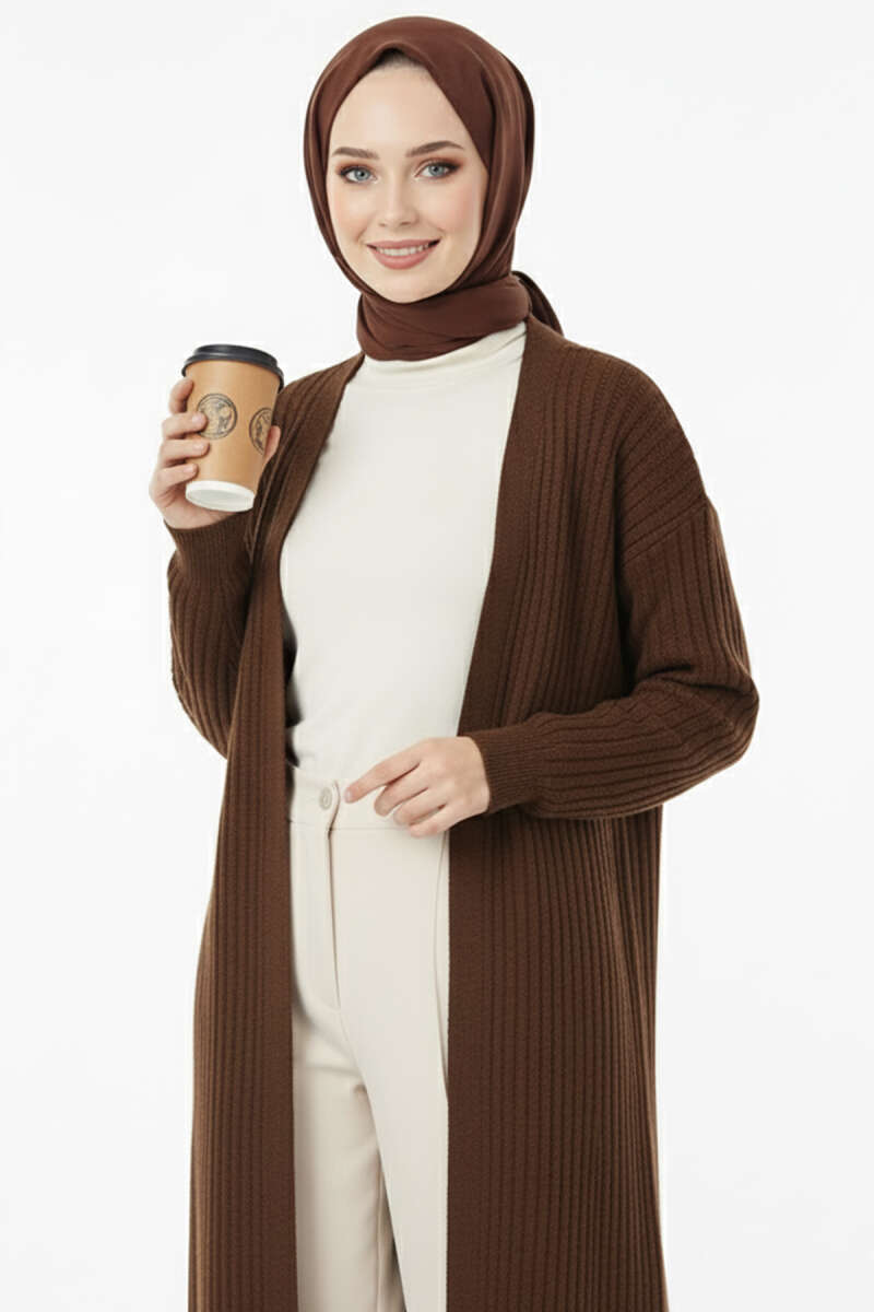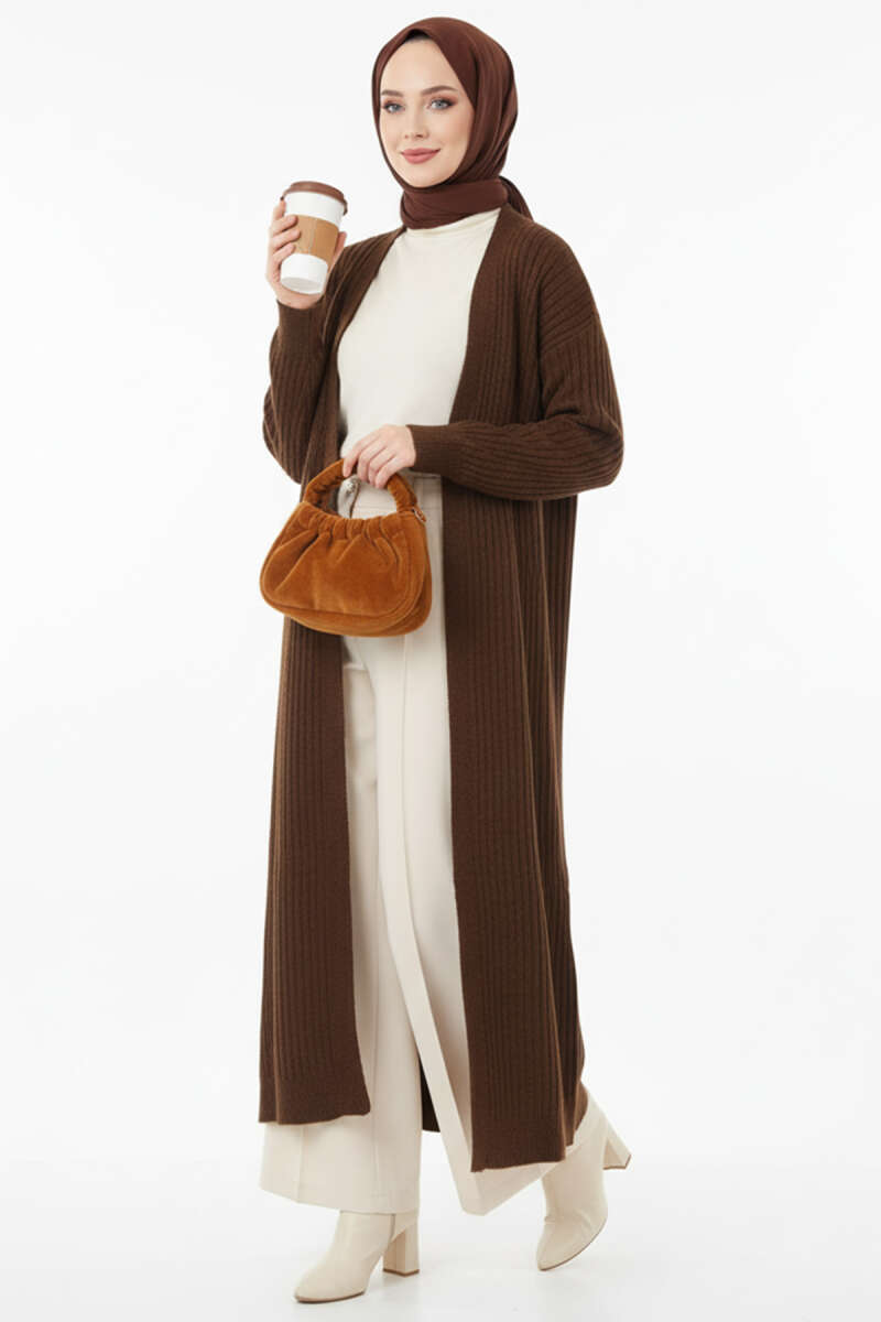 Cepli Örgü Desenli Uzun Hırka Bordo