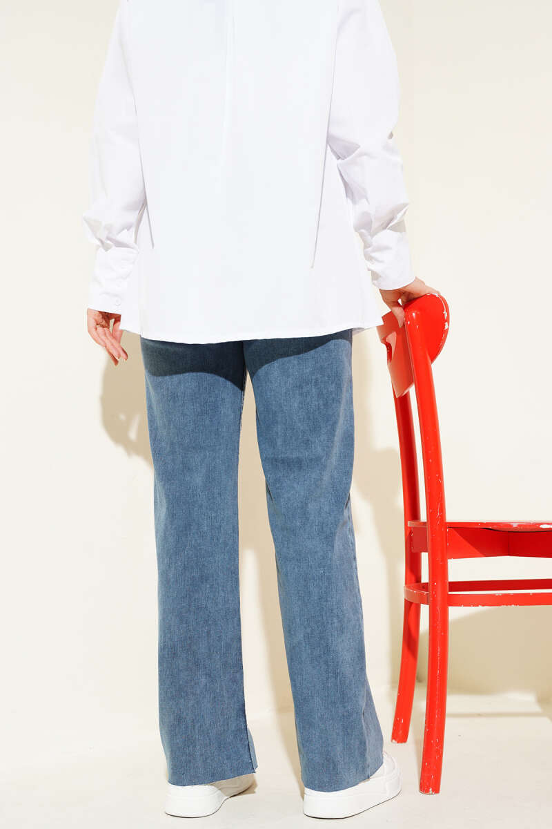 Salaş Kesik Paça Pantolon Orta Mavi Kar
