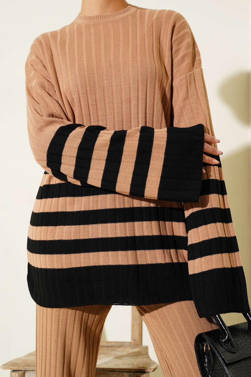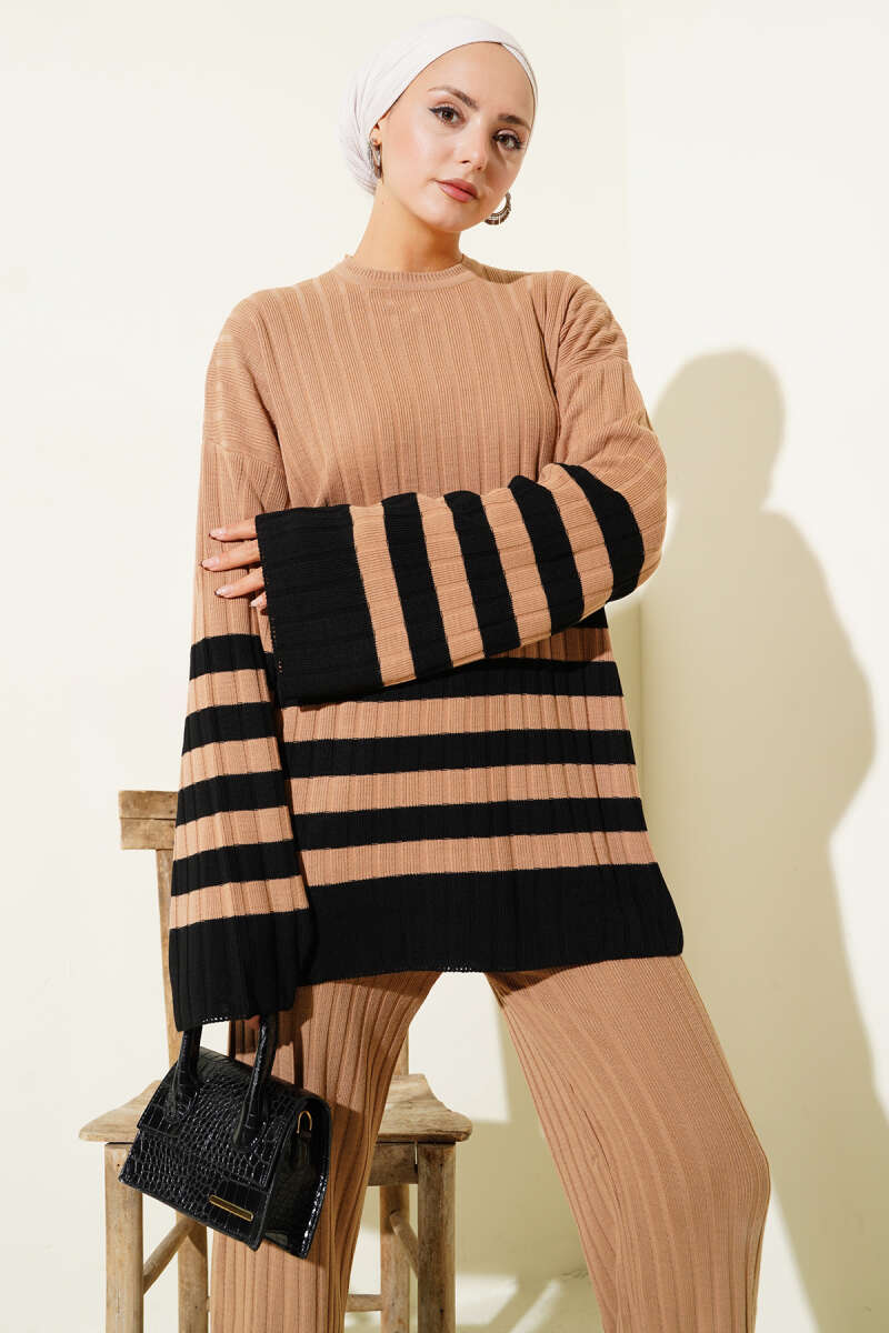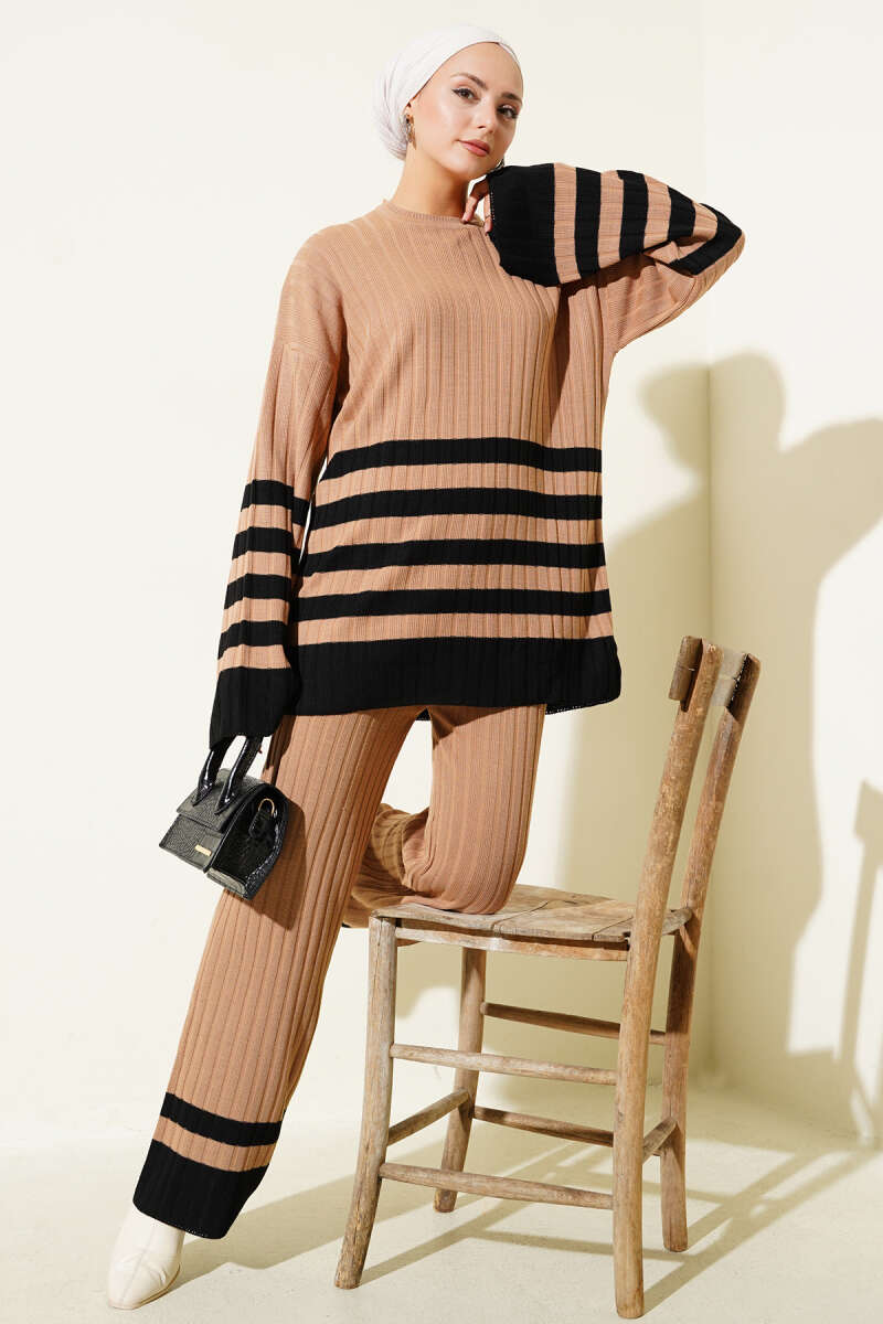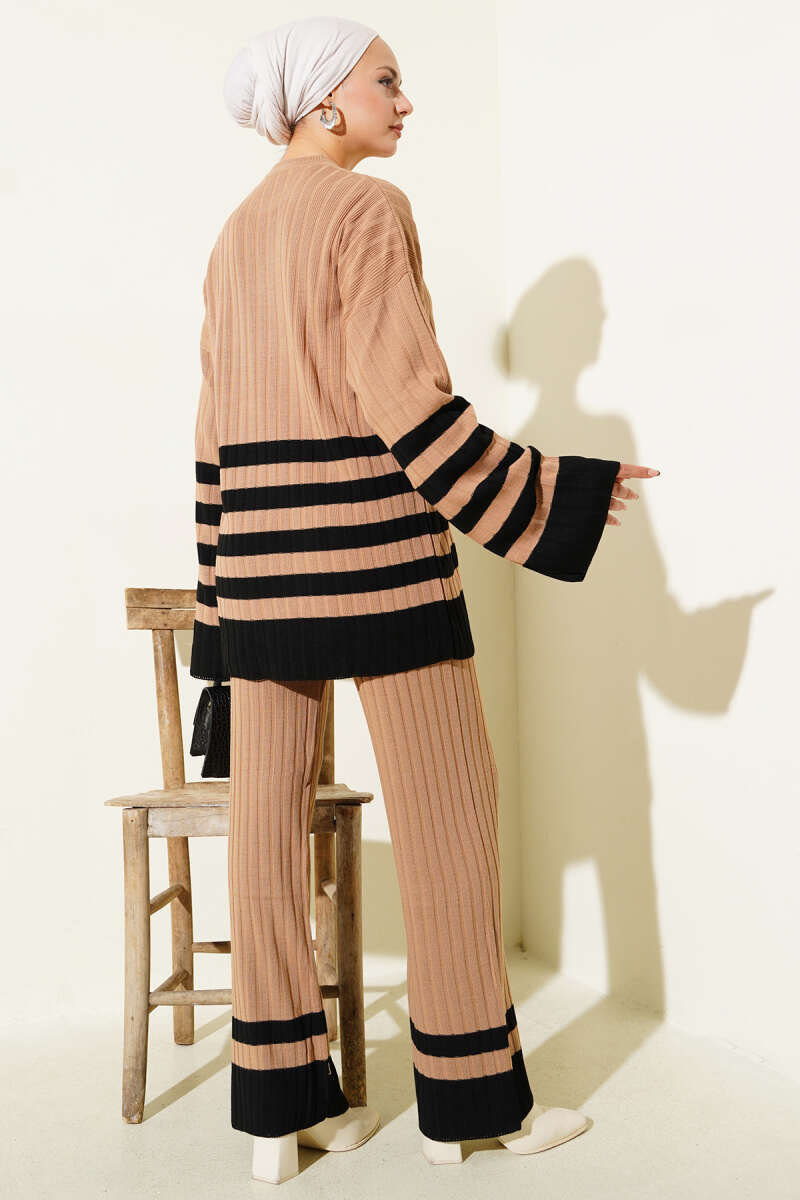 Balıkçı Yaka Fitilli Triko İkili Takım Kahve