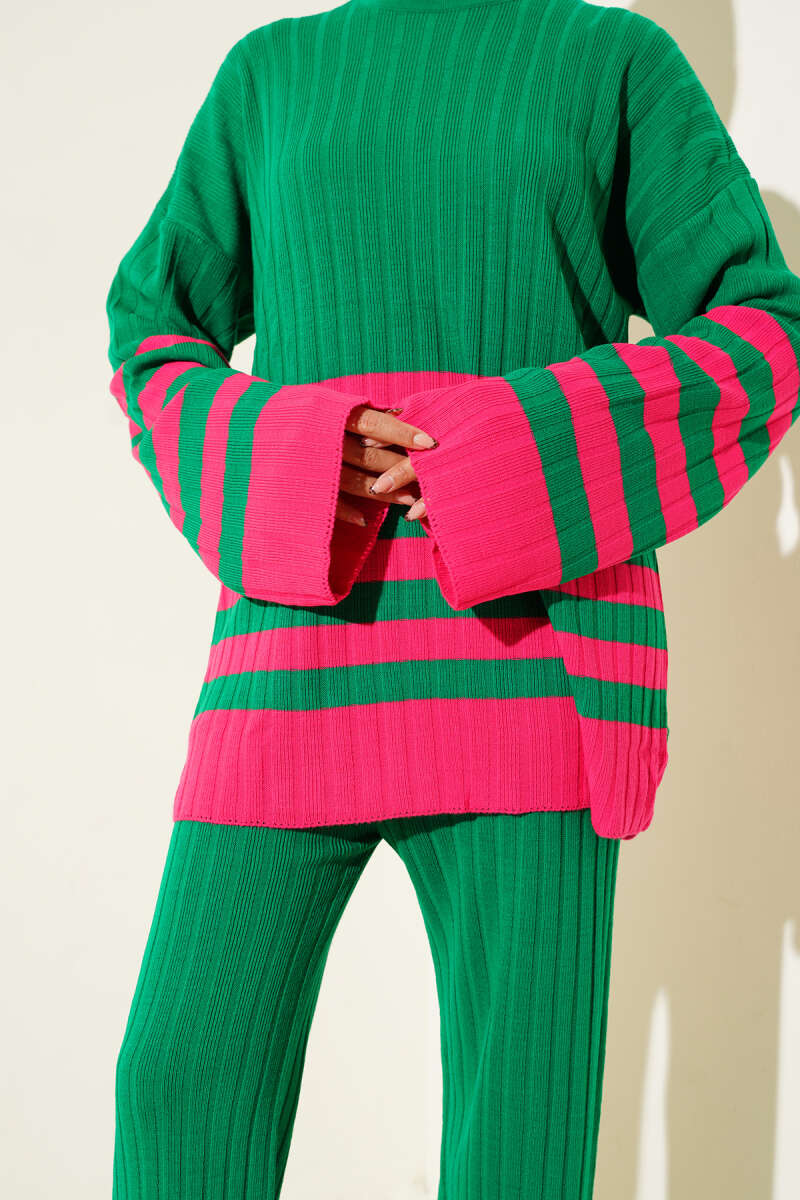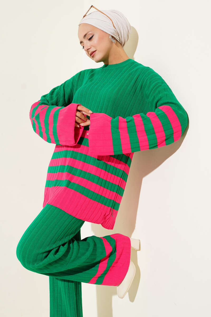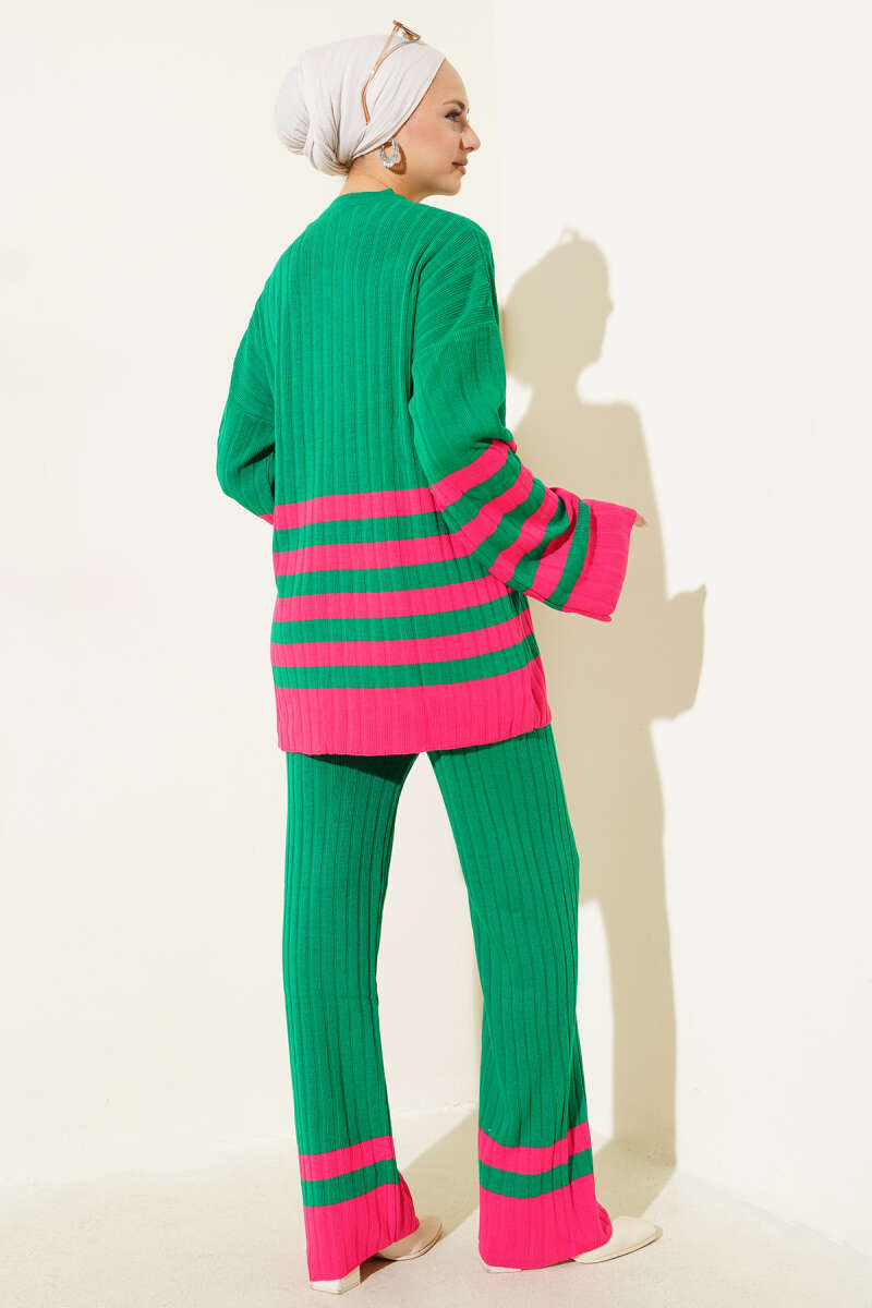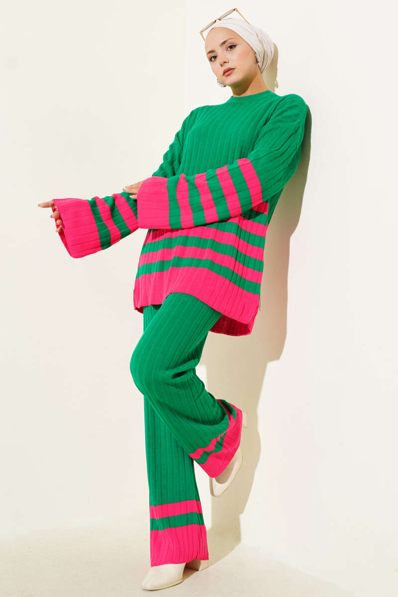 Balıkçı Yaka Fitilli Triko İkili Takım Zümrüt