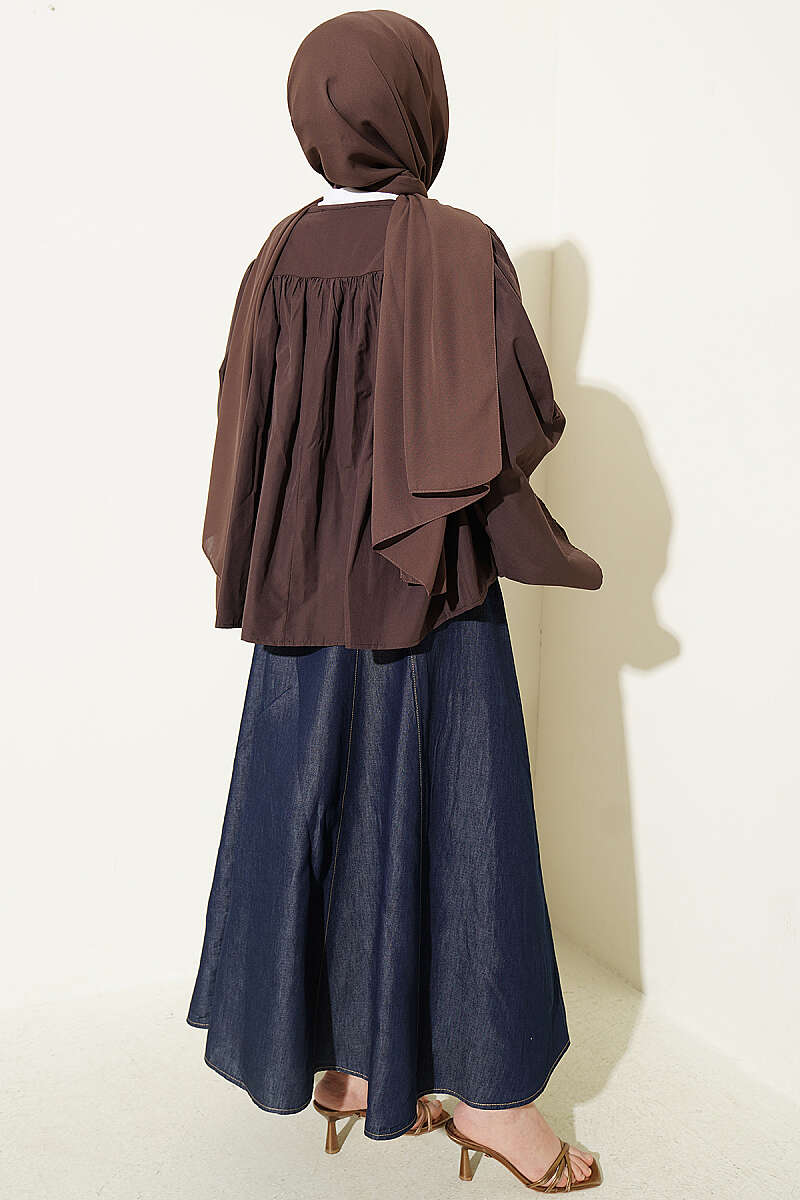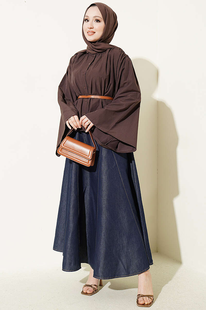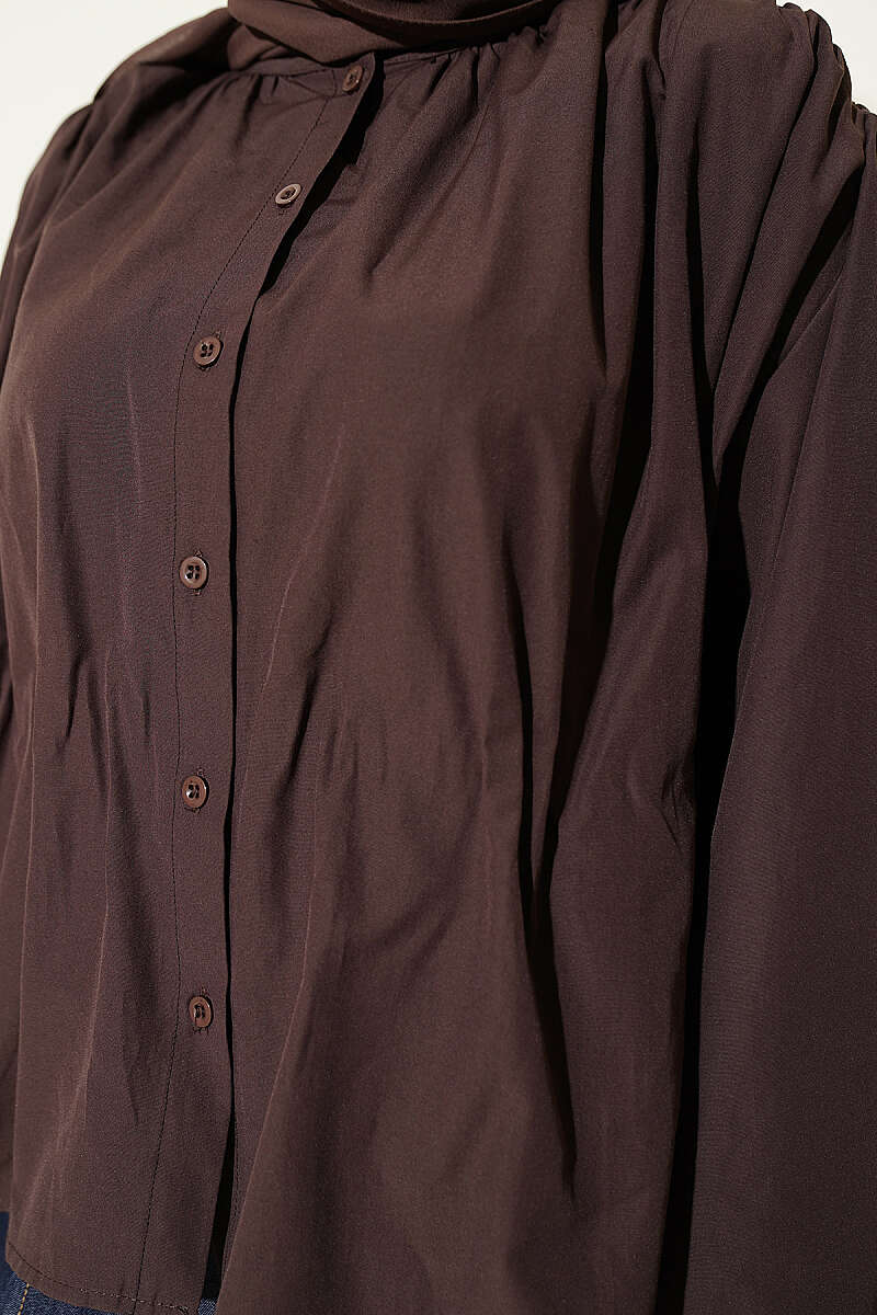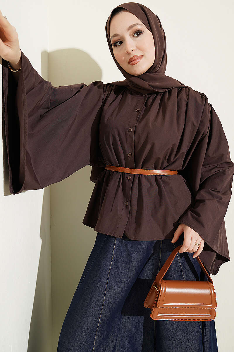 Salaş Kollu Oversize Kısa Gömlek Kahve