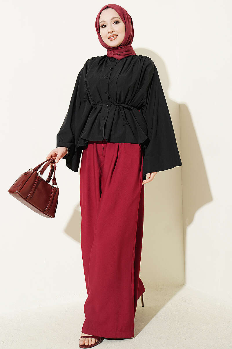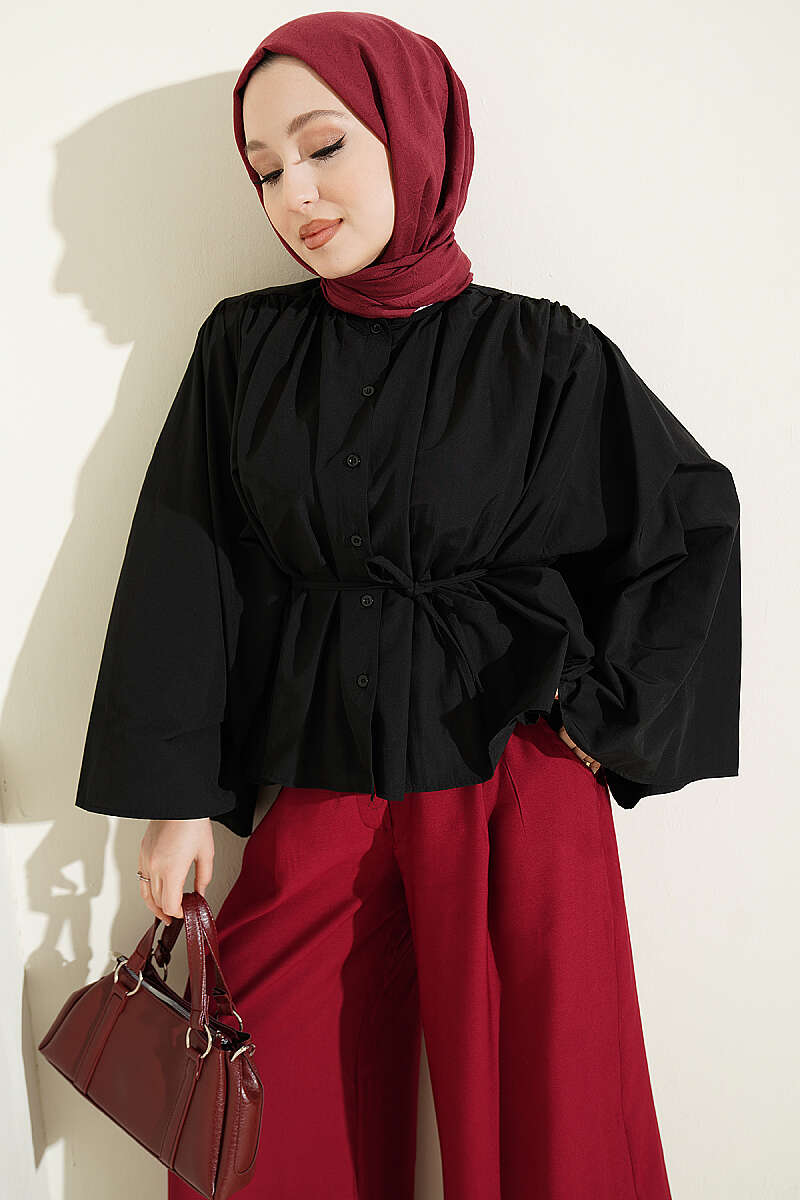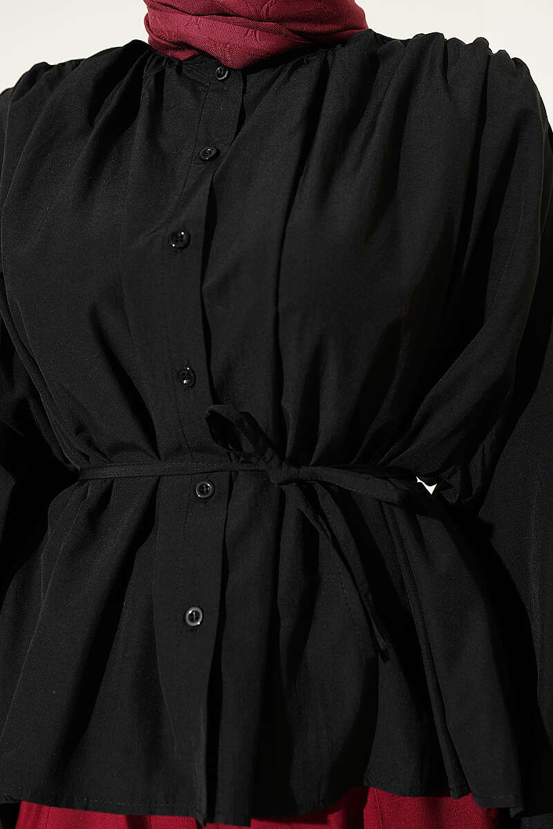 Salaş Kollu Oversize Kısa Gömlek Siyah