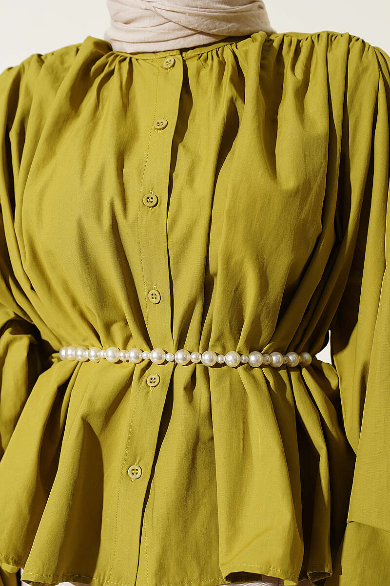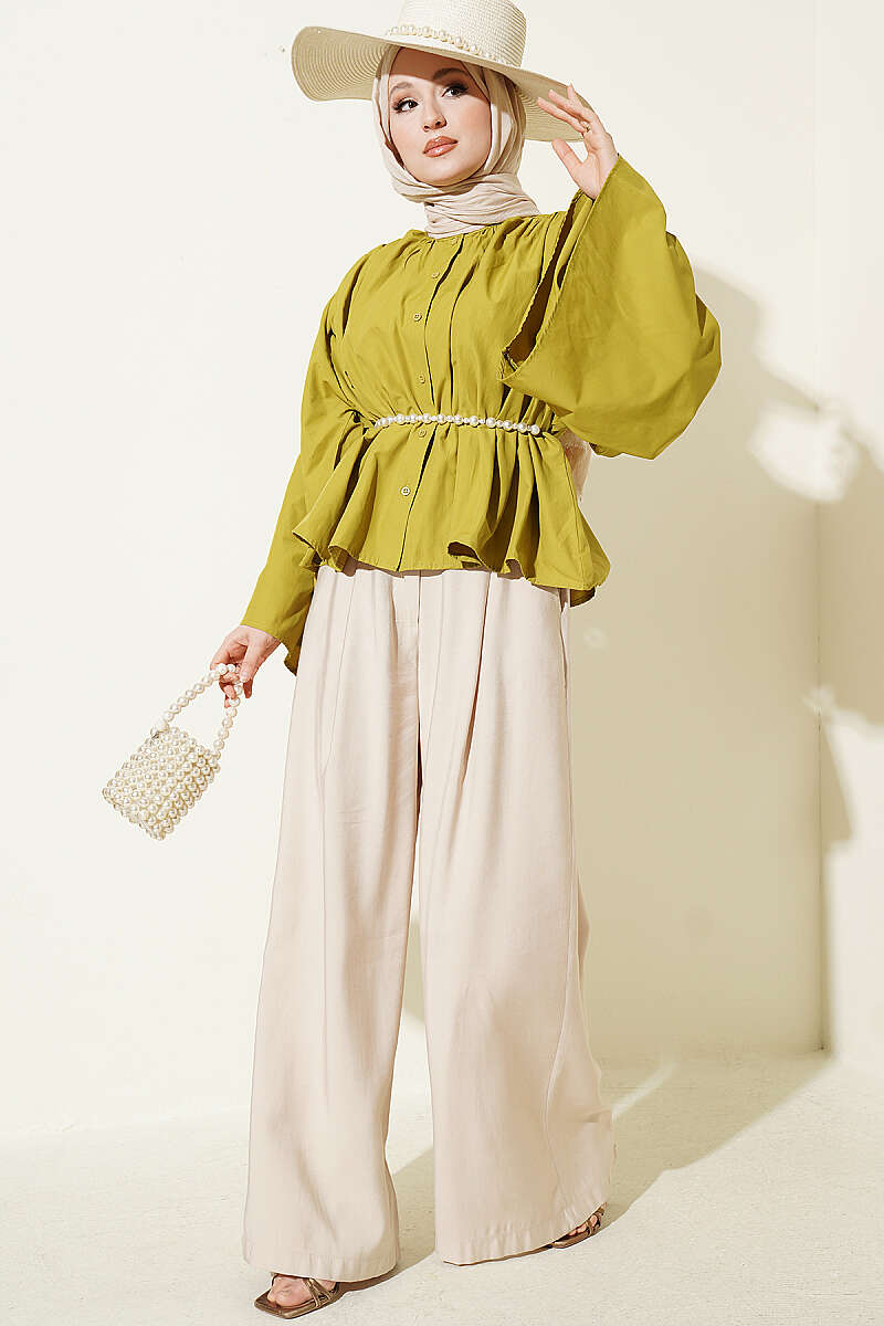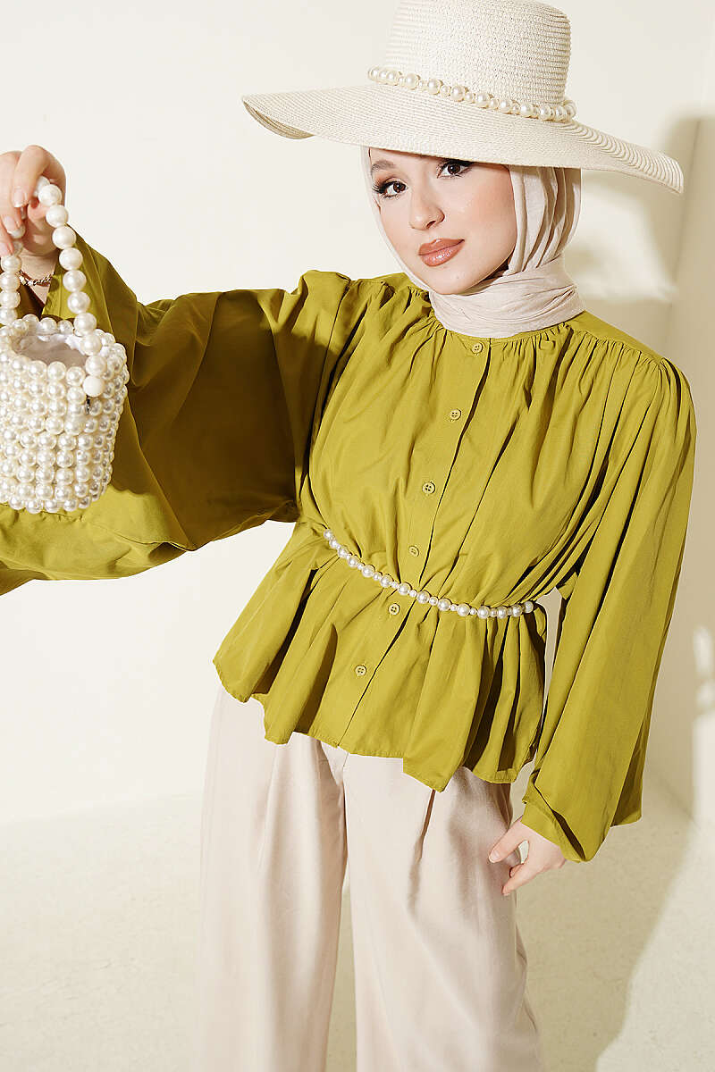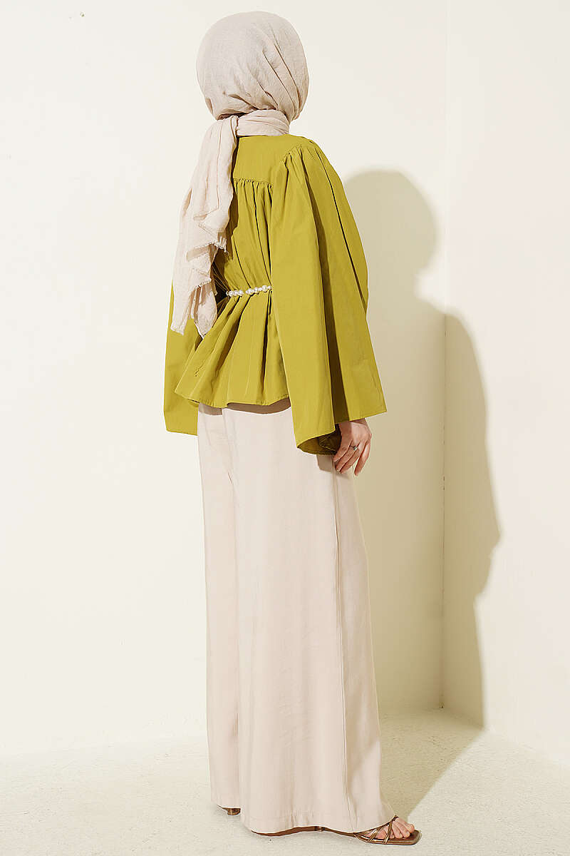 Salaş Kollu Oversize Kısa Gömlek Yağ Yeşili