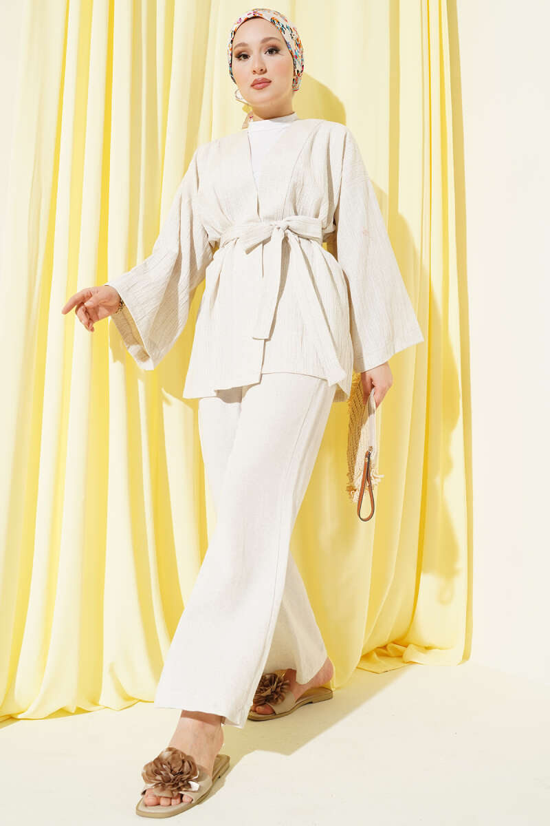 Boydan Fermuarlı Omuz Şeritli Crop Ekru