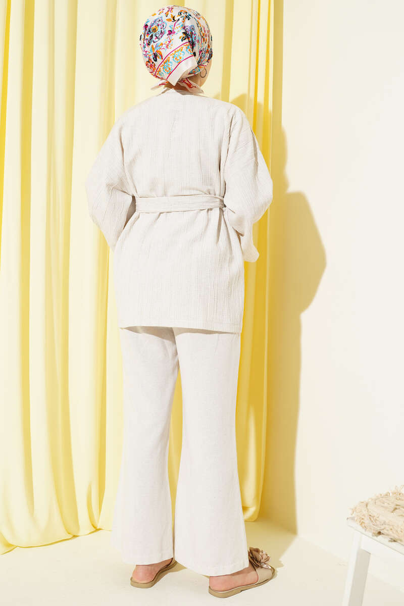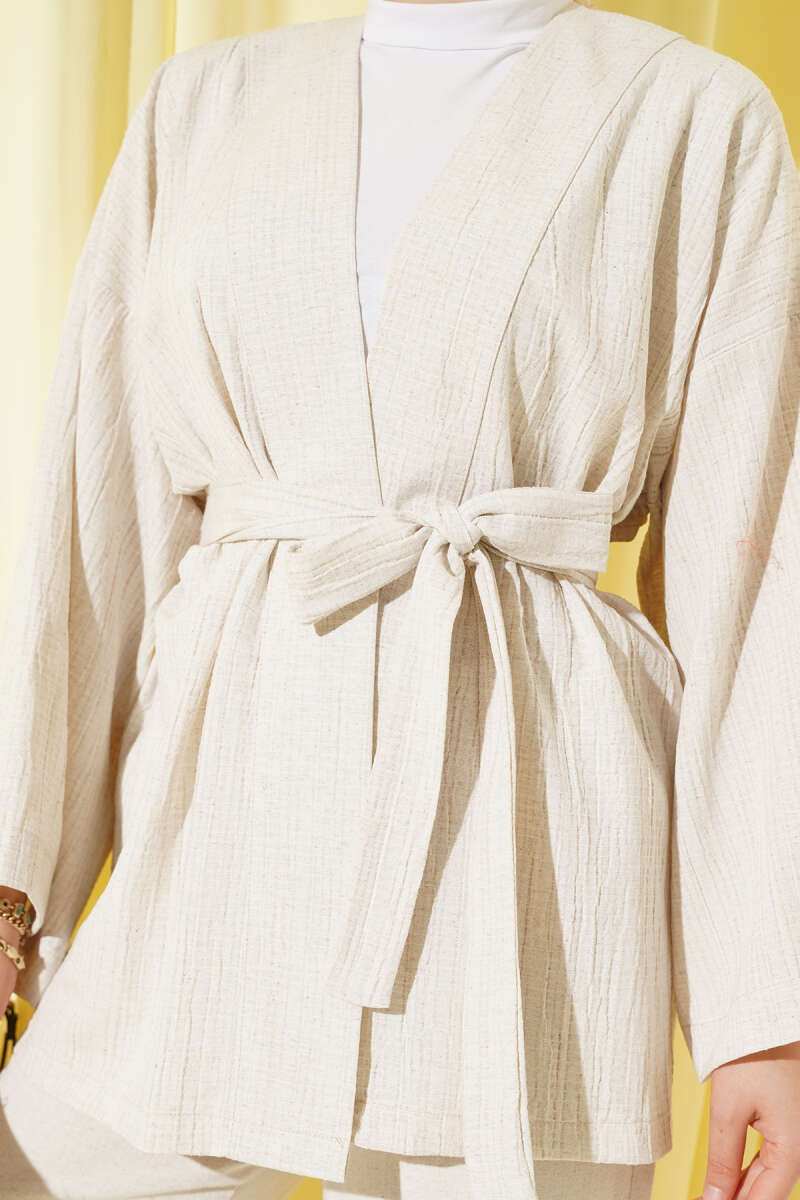 Omuz Vatkalı Degaje Yaka Sandy Bluz Bej