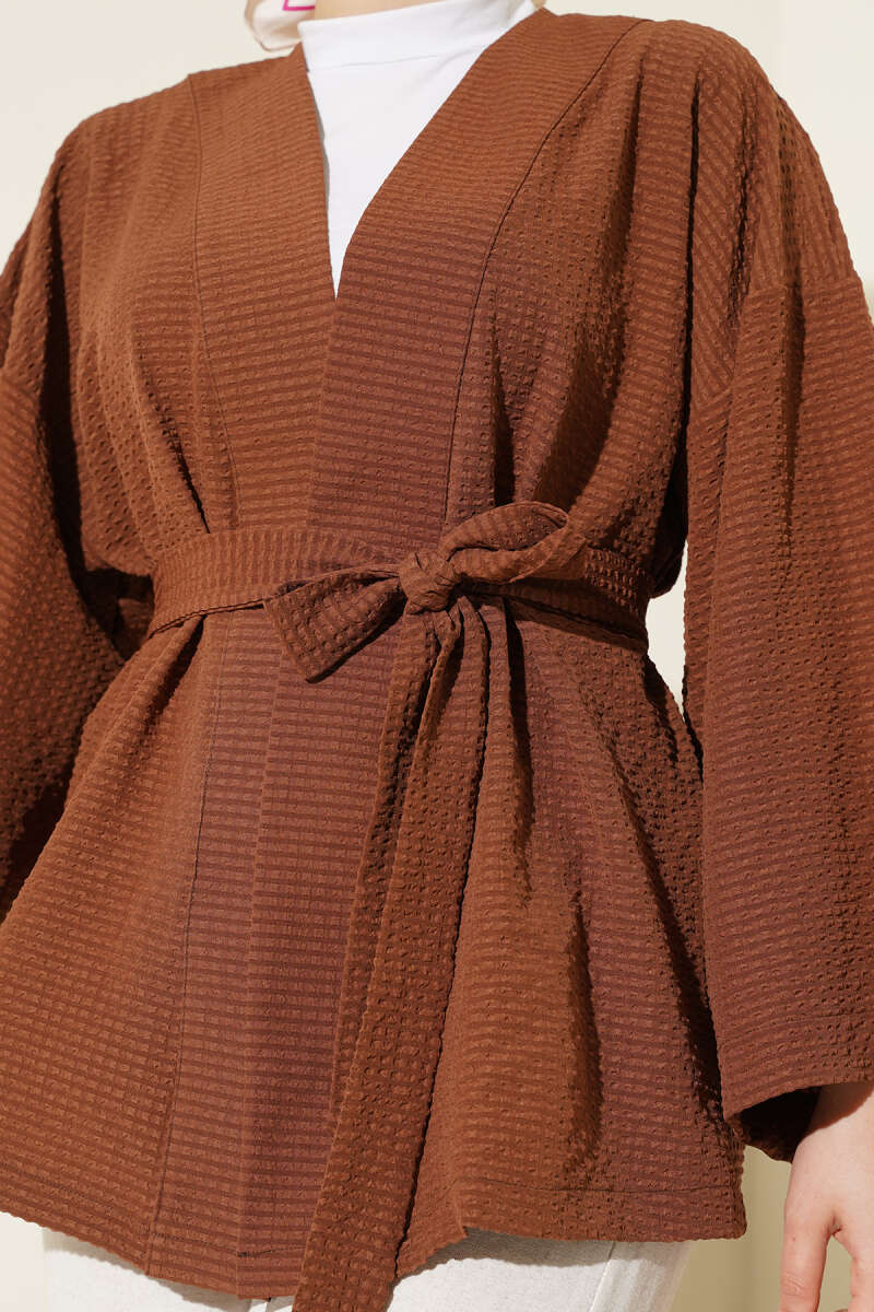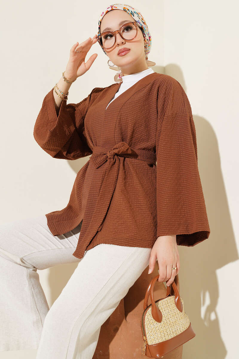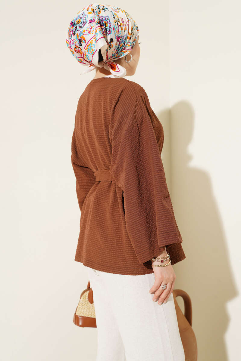 Bel Lastikli Çıtçıtlı Deri Ceket Kahve