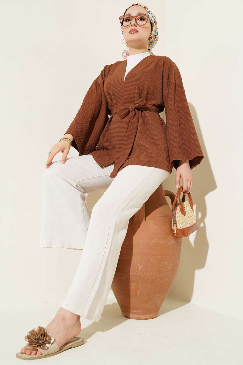 Kuşaklı Cepli Kaşe Kaban Vizon
