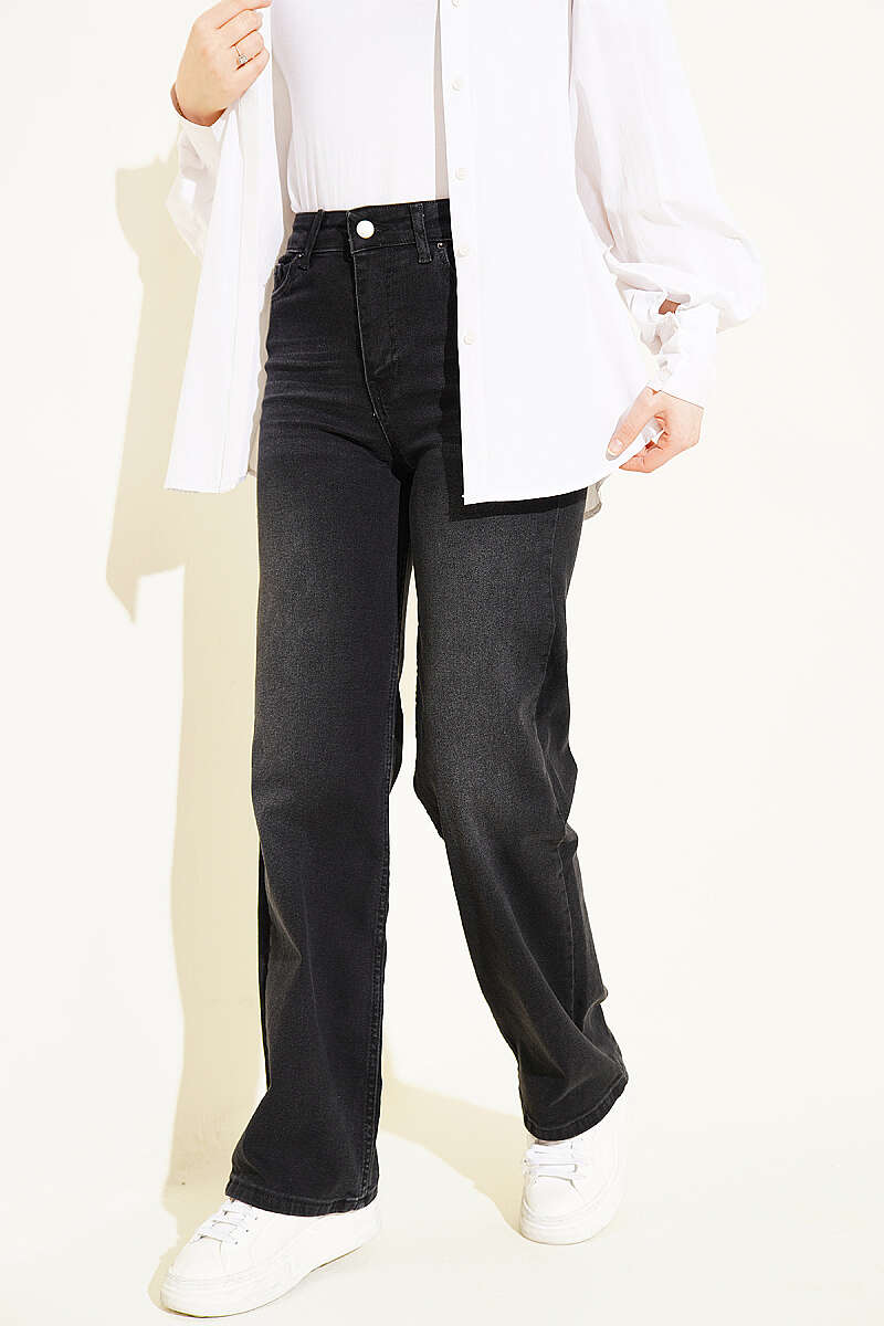 Lazer Paça Mom Fit Kot Pantolon Buz Mavisi