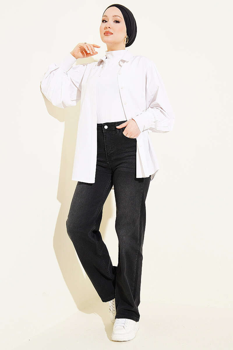 Paça Yırtmaçlı Scuba Pantolon Beyaz
