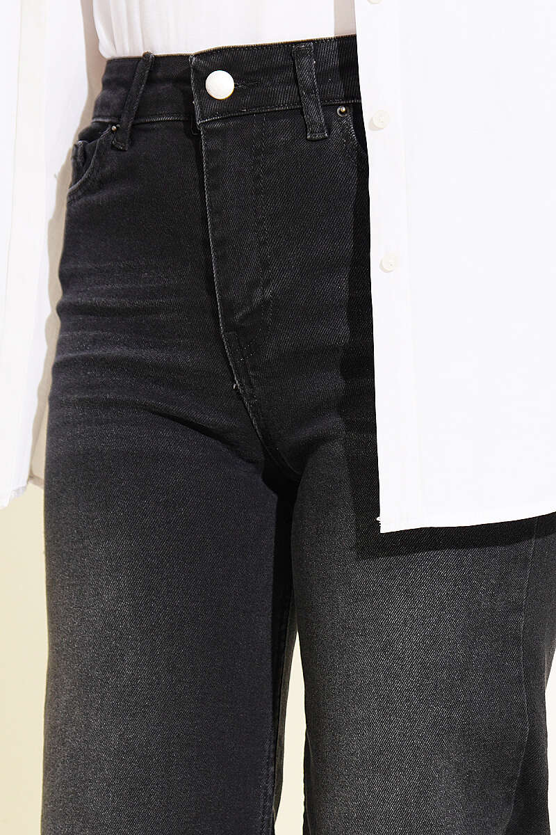 Kesik Dar Paça Likralı Kot Pantolon Bej