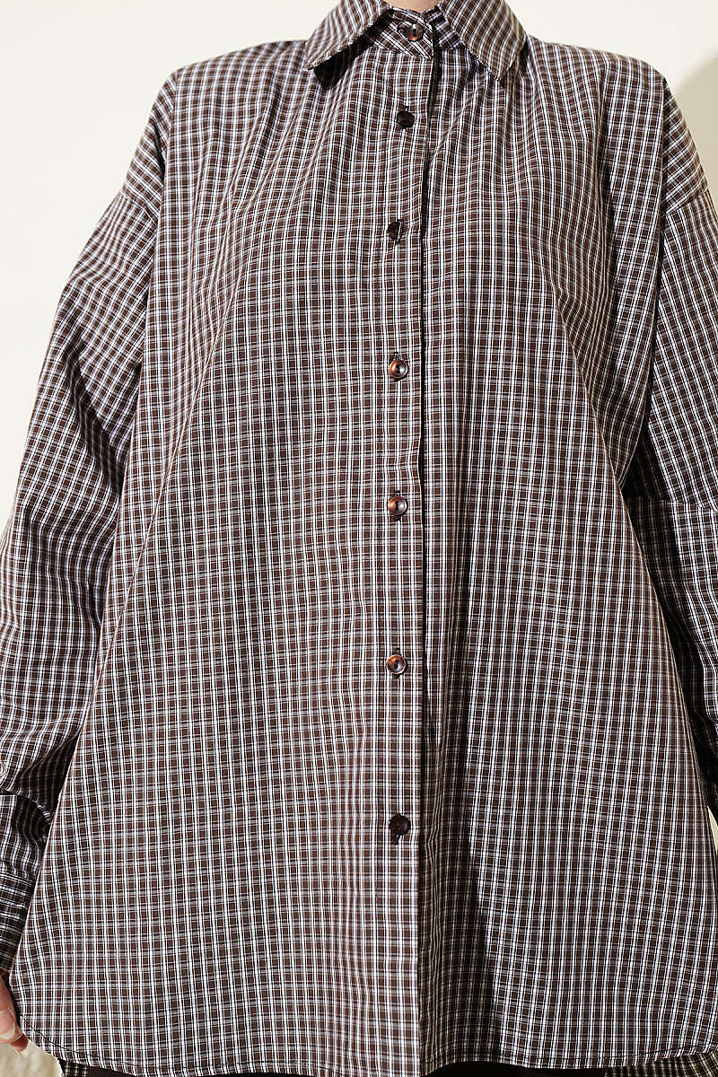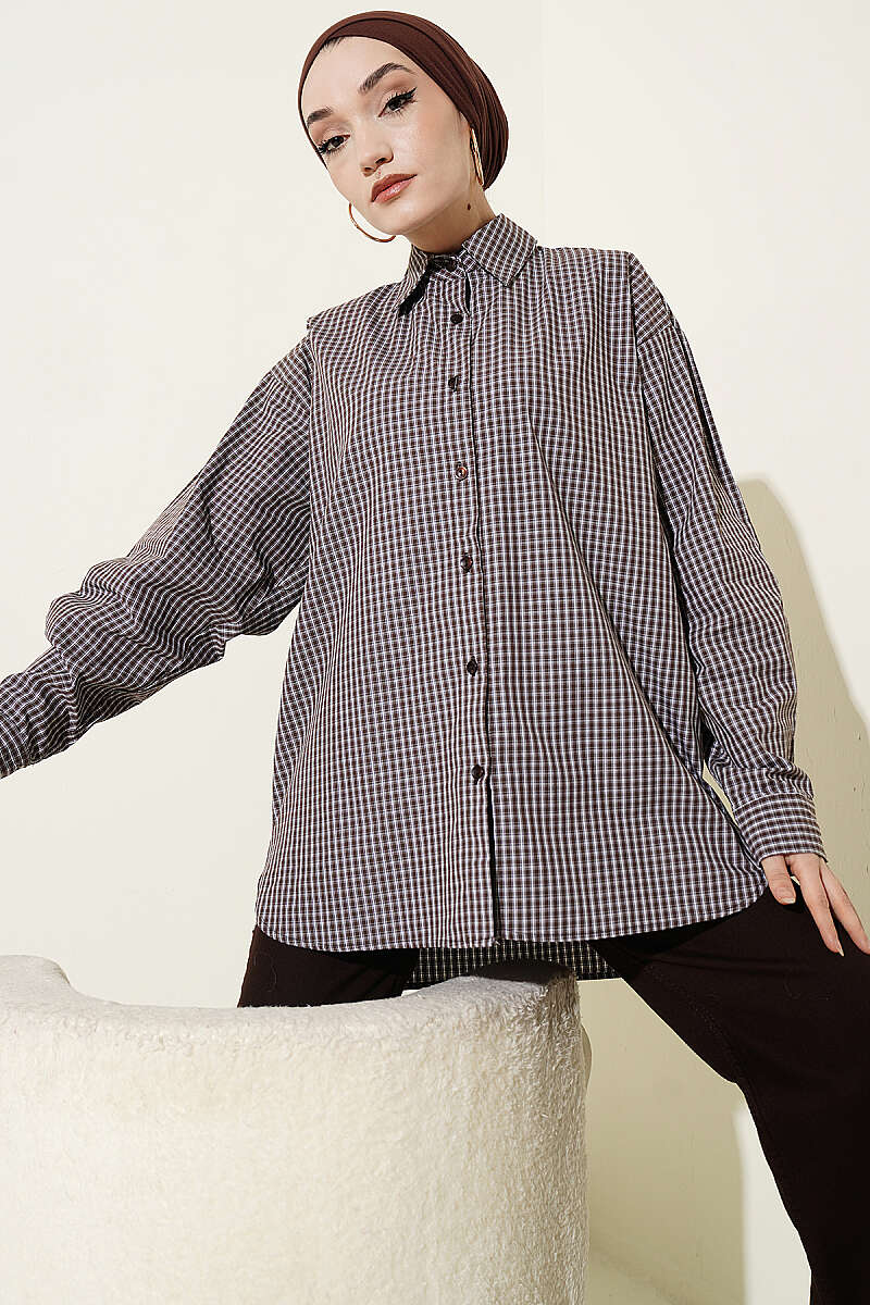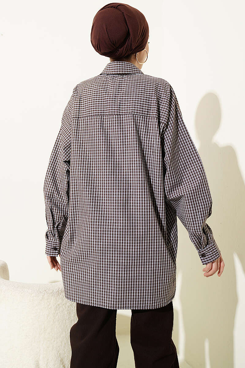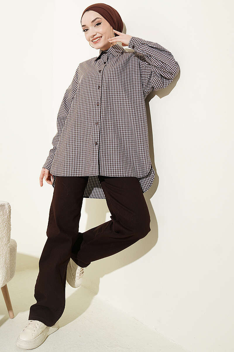 Salaş Pötikare Desen Salaş Gömlek Kahve