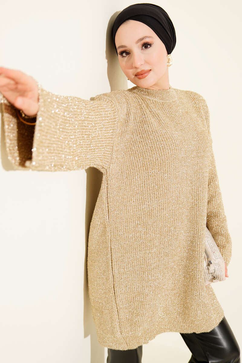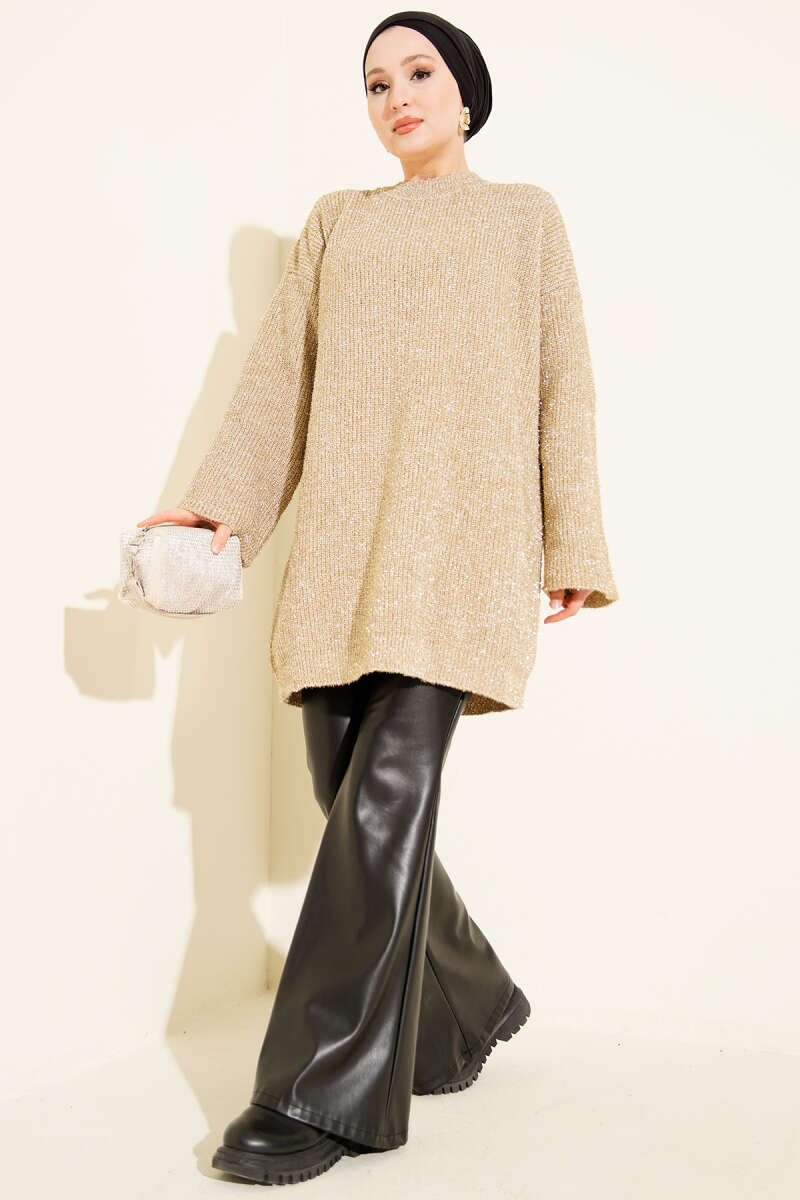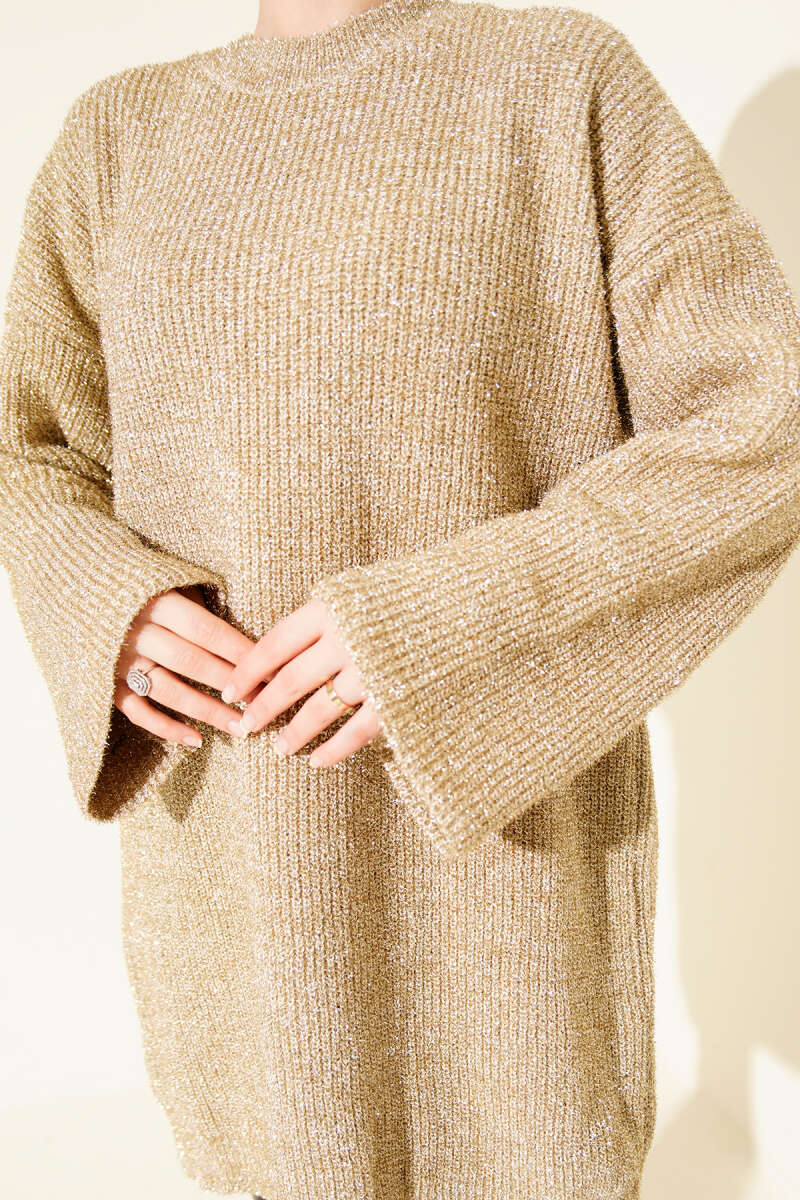 Salaş Simli Triko Tunik Kahve