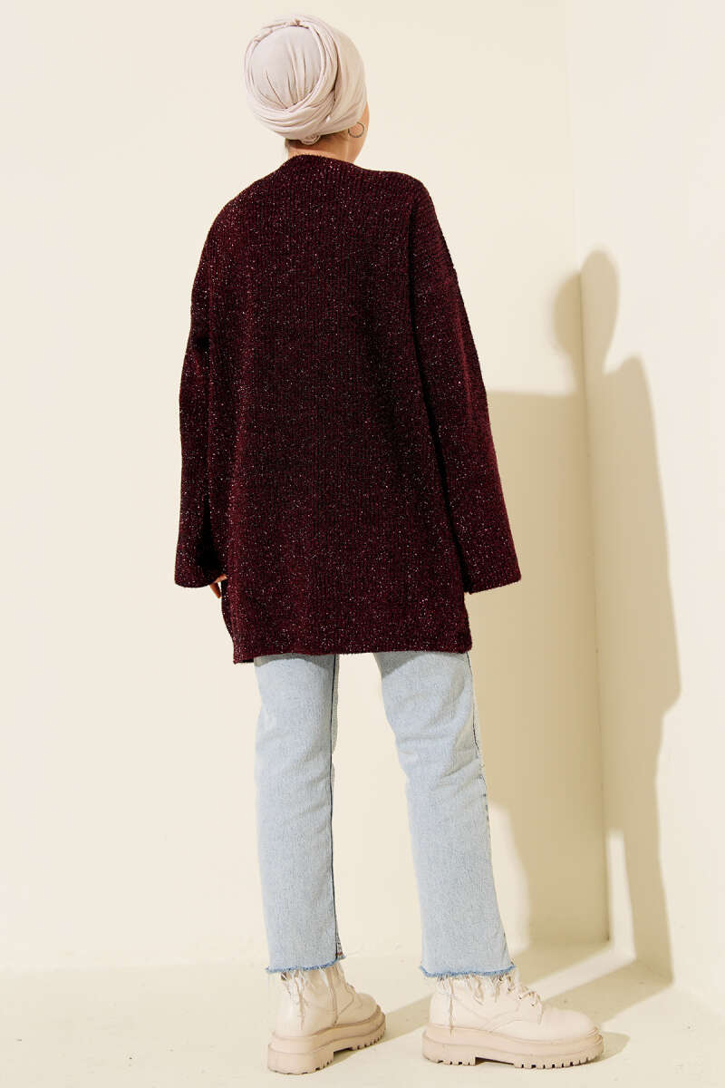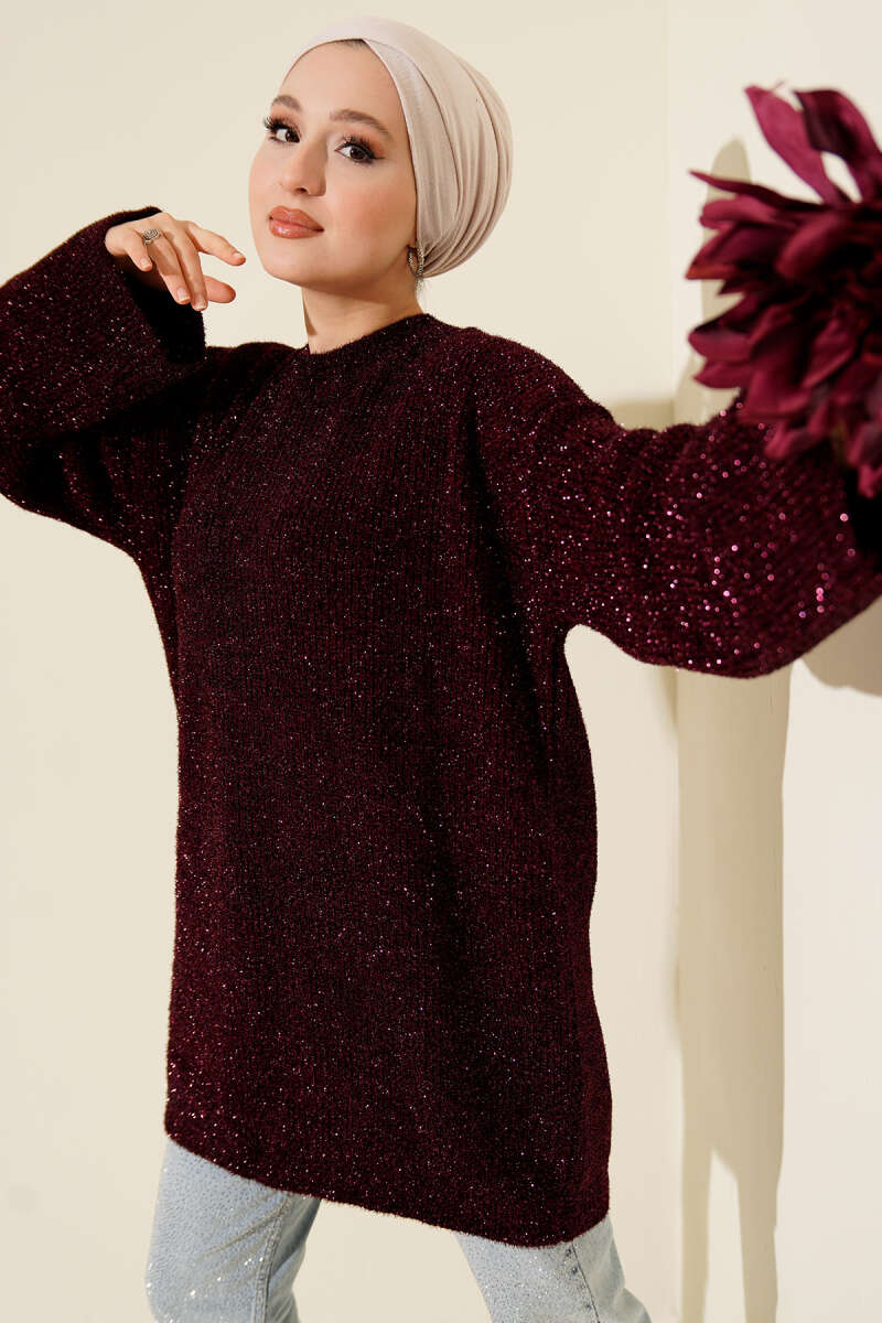 Basic Yatay Çizgi Detaylı Triko Tunik Bordo