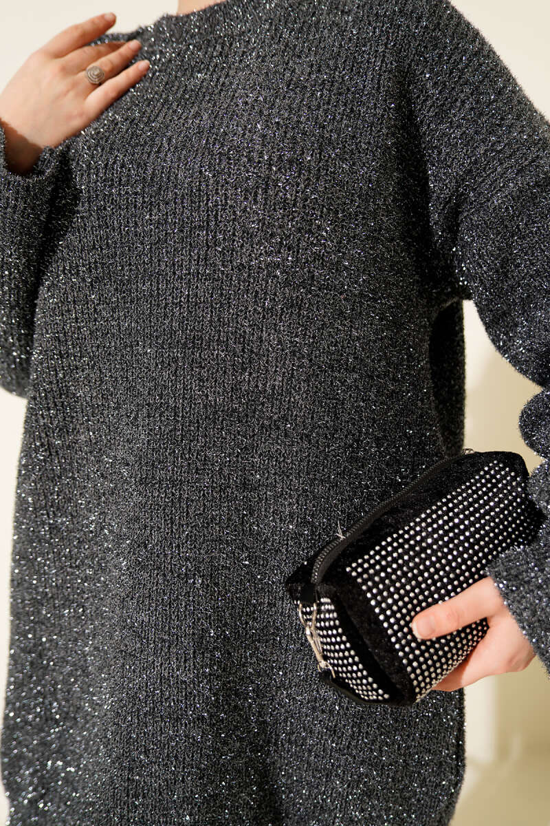 Basic Yatay Çizgi Detaylı Triko Tunik Bordo