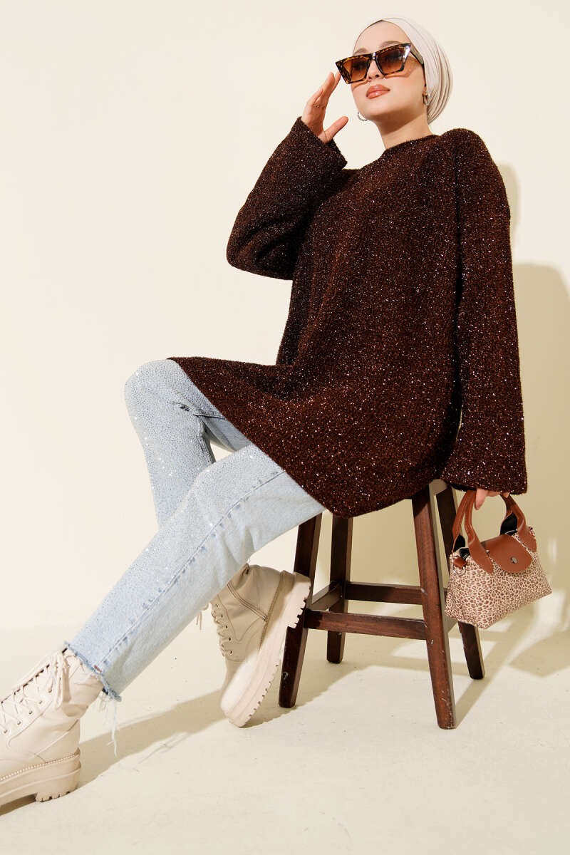 Basic Yatay Çizgi Detaylı Triko Tunik Bordo