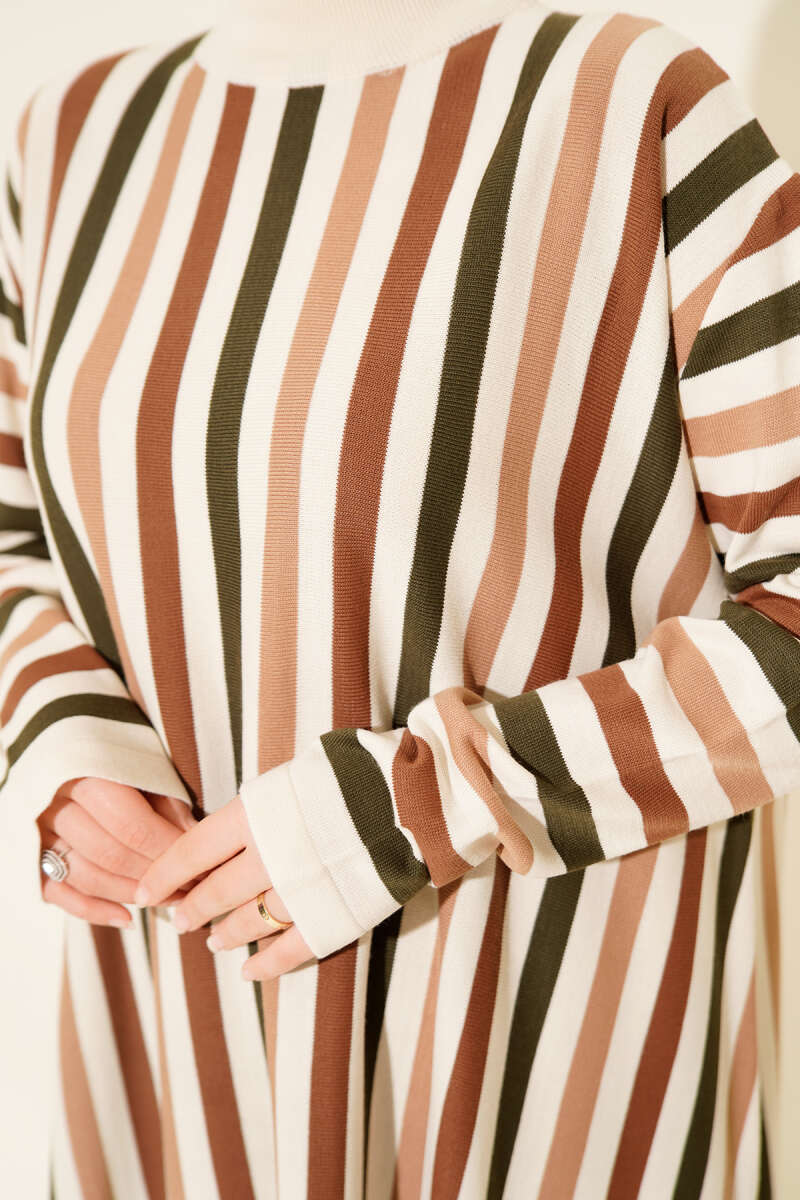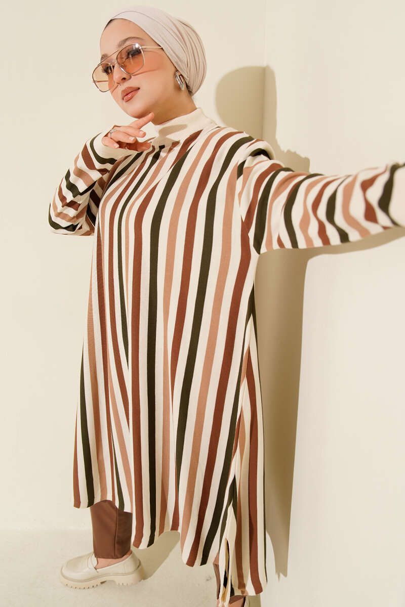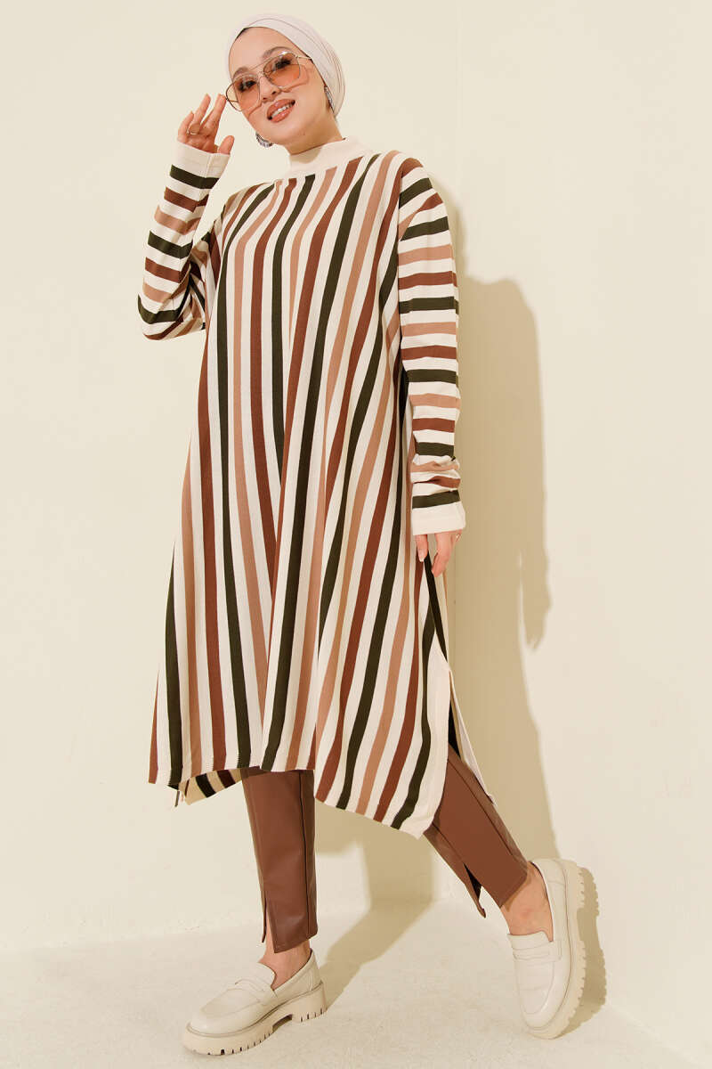 Yan Yırtmaçlı Yumoş Uzun Triko Tunik Yağ Yeşili