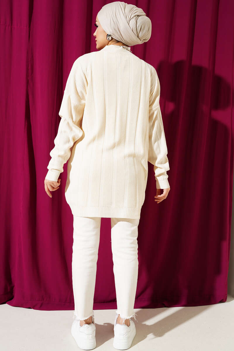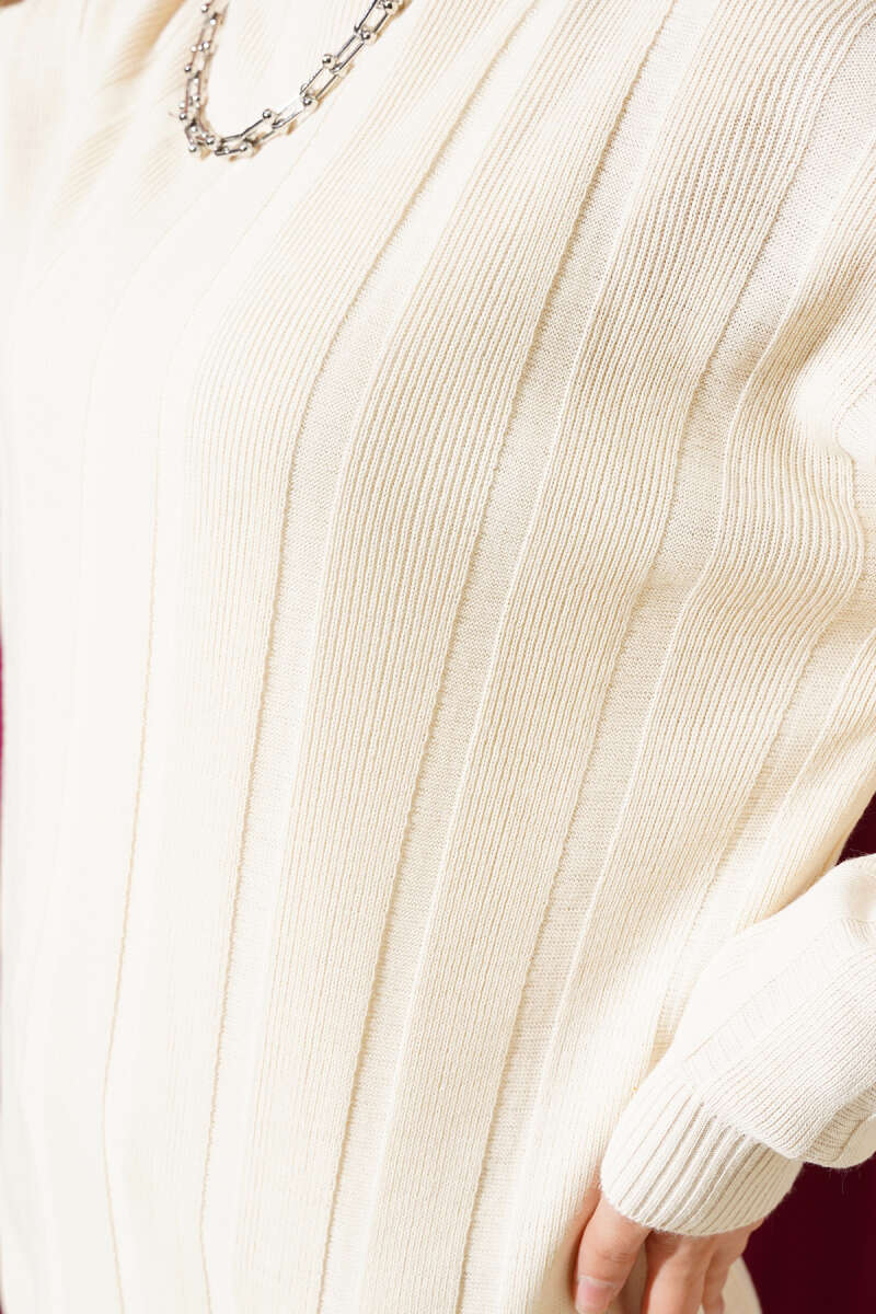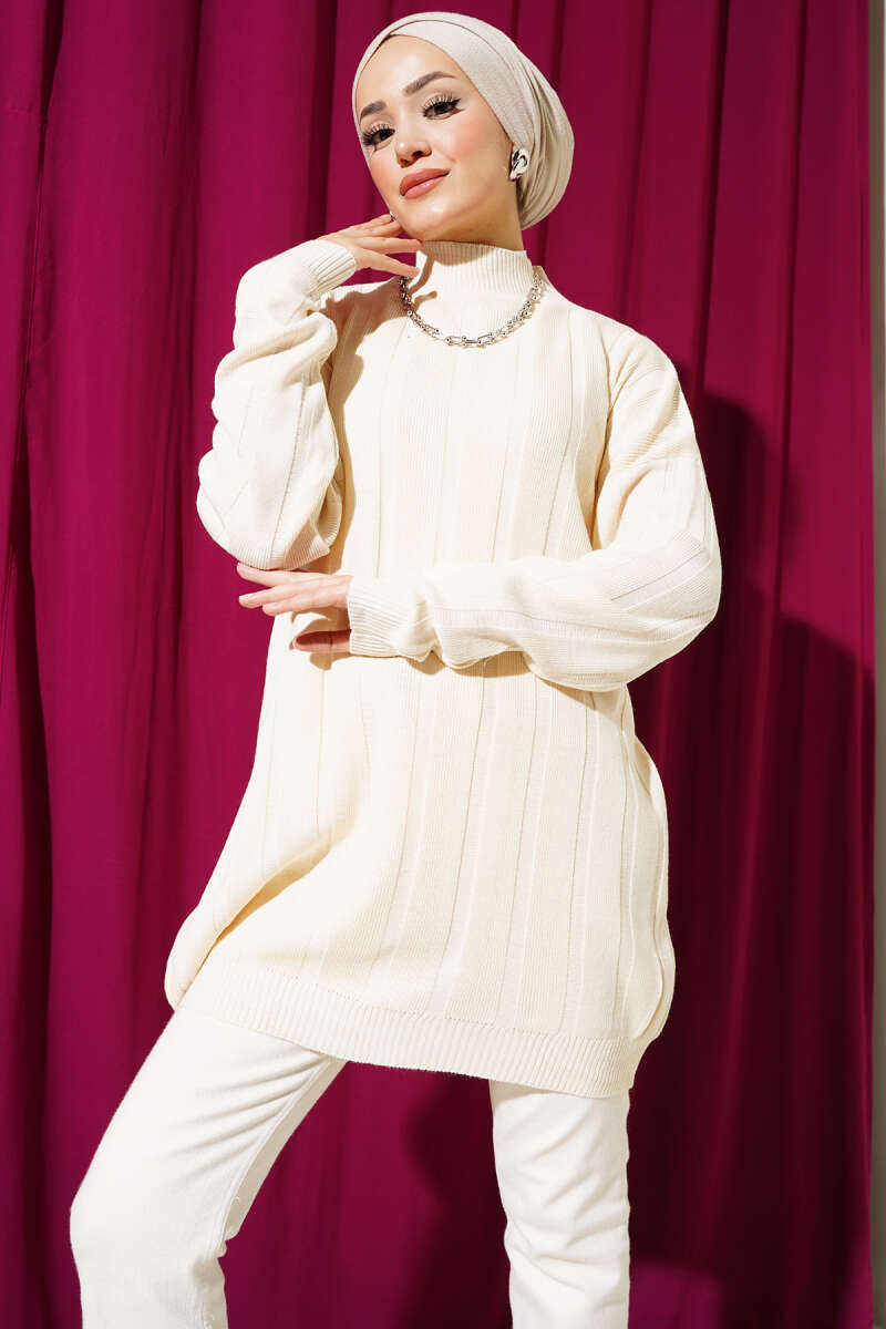 Salaş Bisiklet Yaka Simli Triko Tunik Bej