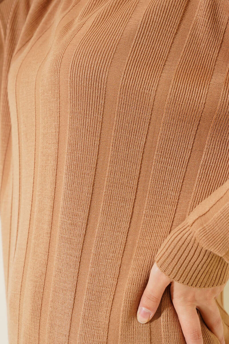 Yatay Çizgi Detaylı Triko Tunik Kahve