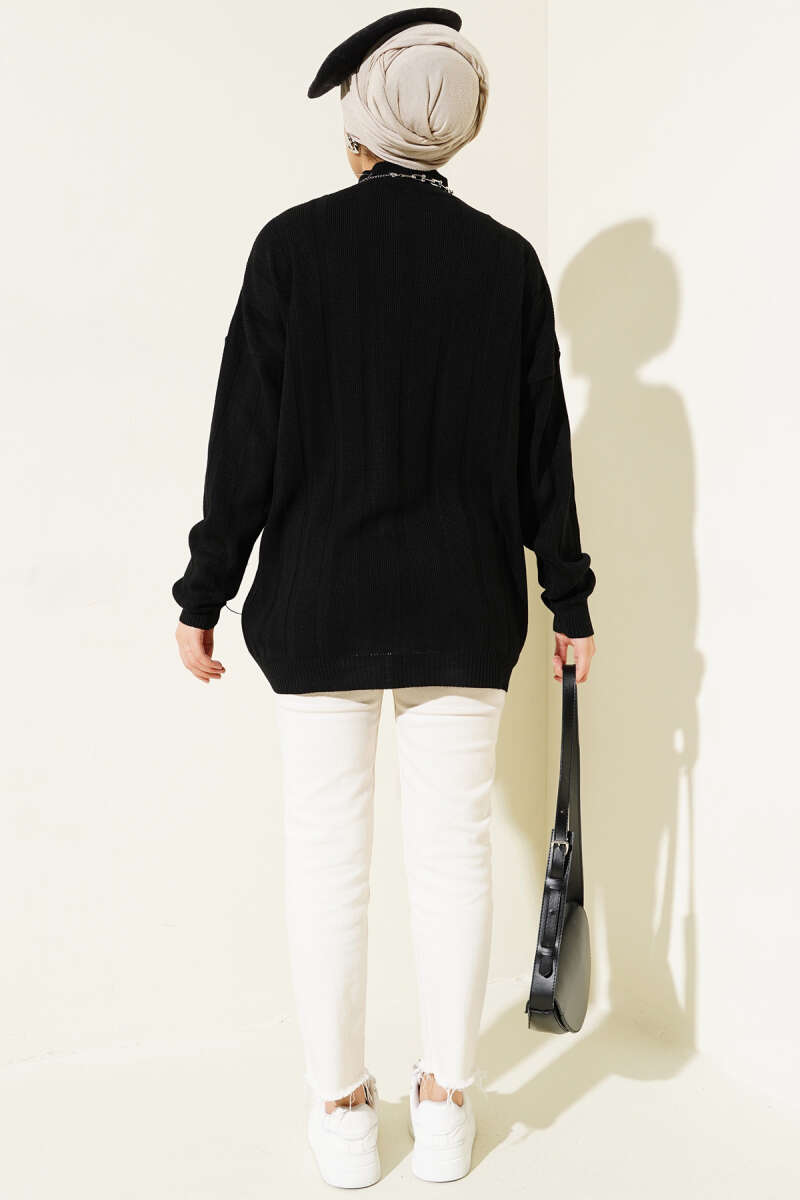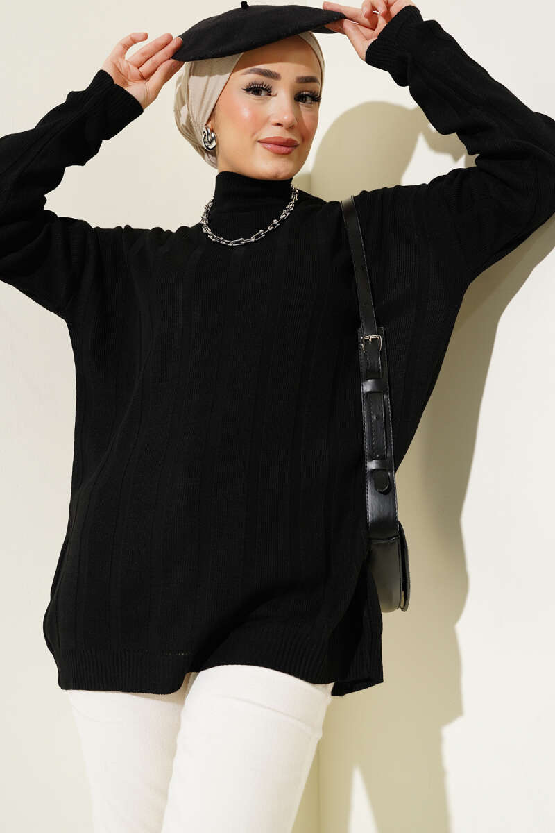 Salaş Yarım Balıkçı Triko Tunik Siyah