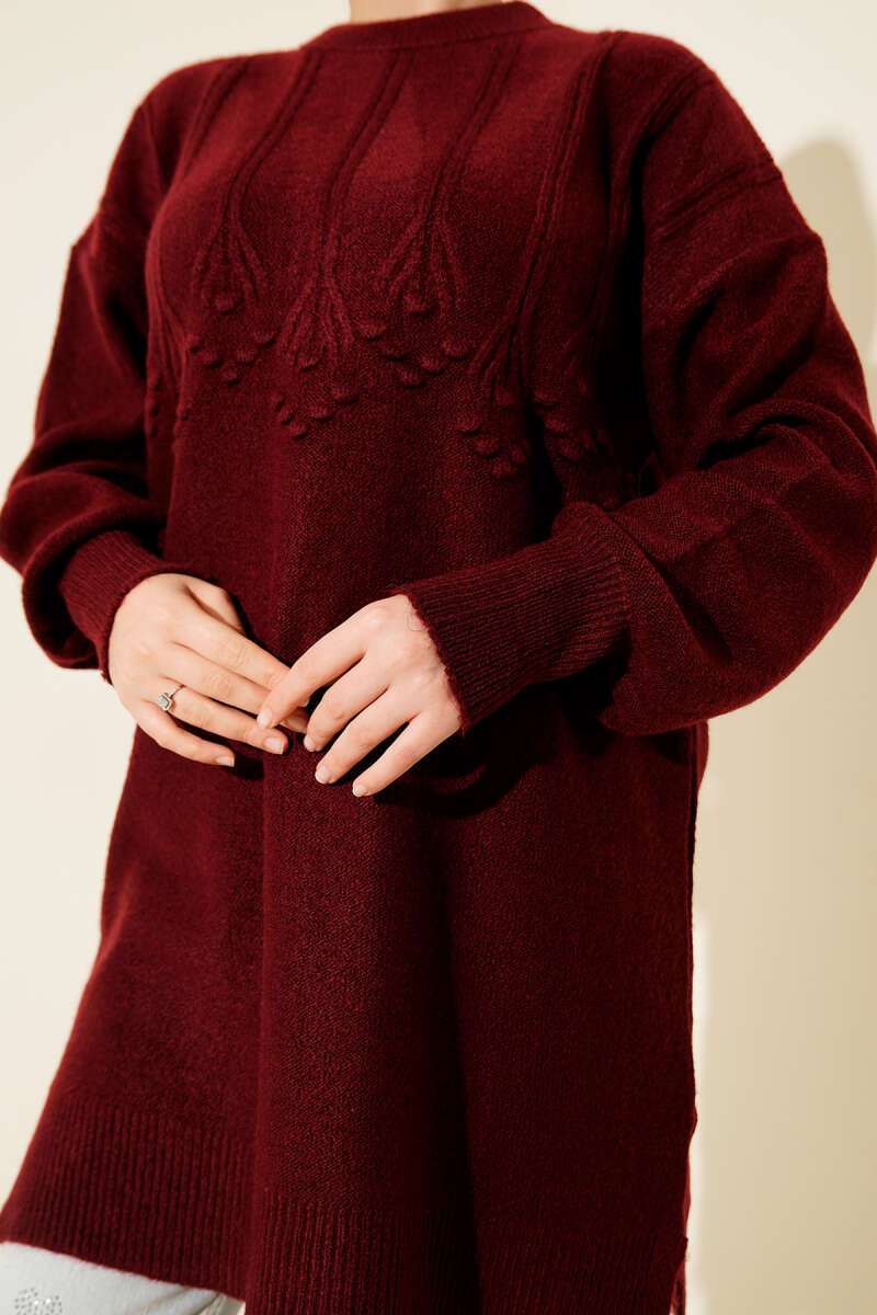 Salkım Kabartma Yumoş Triko Tunik Vişne
