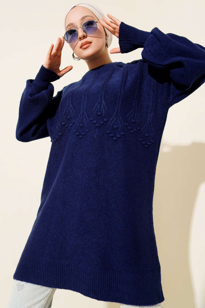 Salkım Kabartma Yumoş Triko Tunik Pudra
